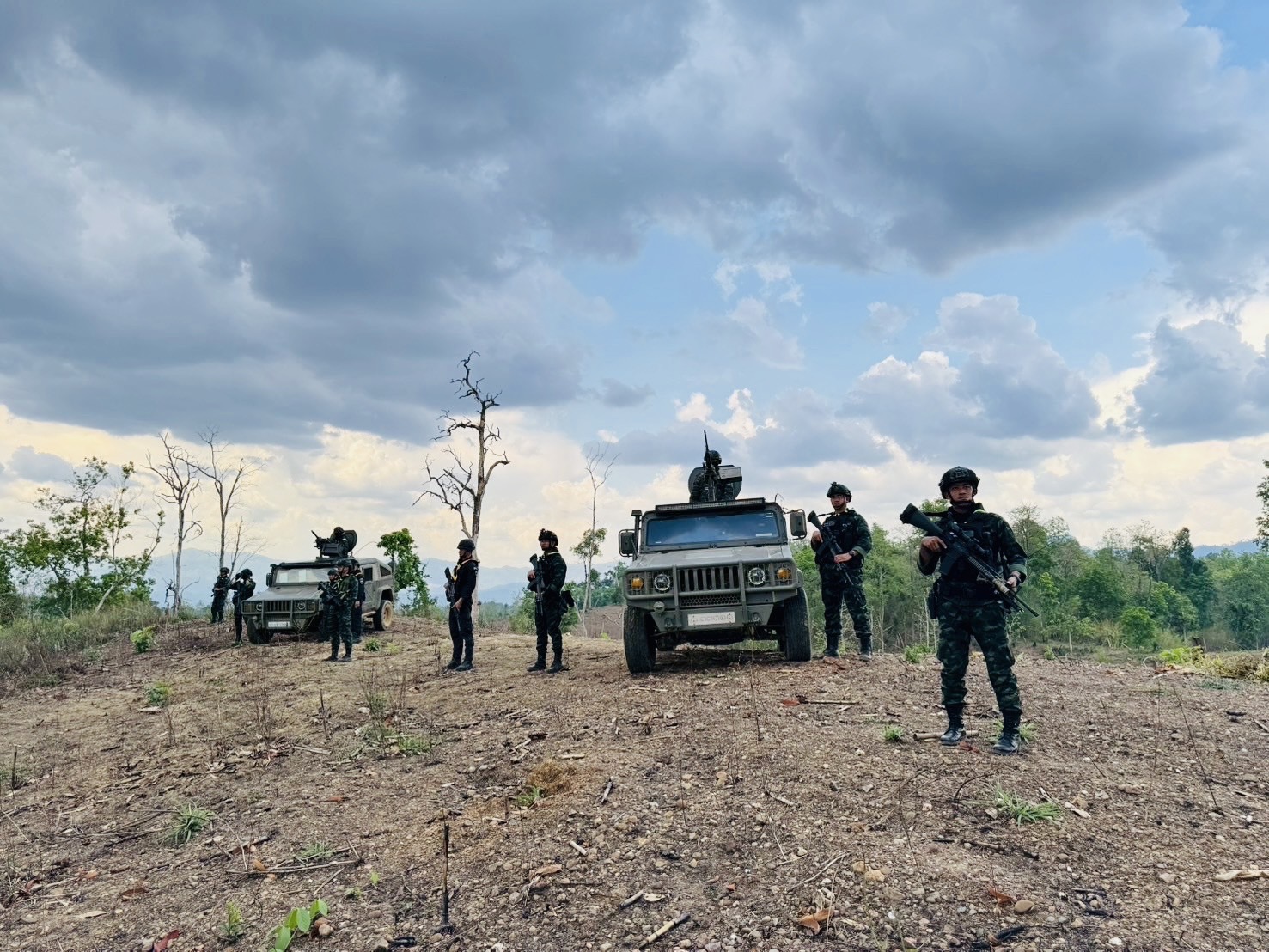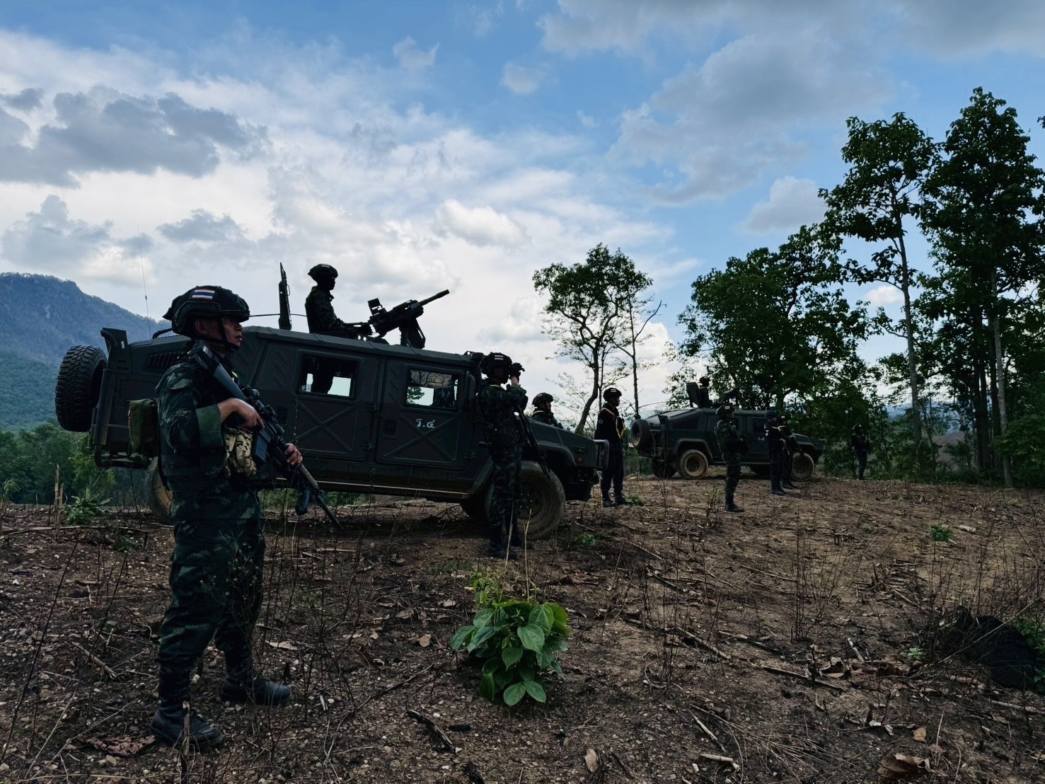 โดย ฉก.ราชมนู และ ฉก.ทพ.35 กกล.นเรศวร จัดกำลังเพิ่มความเข้มข้นในการลาดตระเวนตามแนวชายแดน ,นำอาวุธยิงสนับสนุนเข้าที่ตั้งตามแผนเผชิญเหตุ เพื่อป้องกันการรุกล้ำอธิปไตยของกองกำลังติดอาวุธต่างชาติ และดูแลความปลอดภัยให้กับพี่น้องประชาชนตลอด 24 ชั่วโมง
