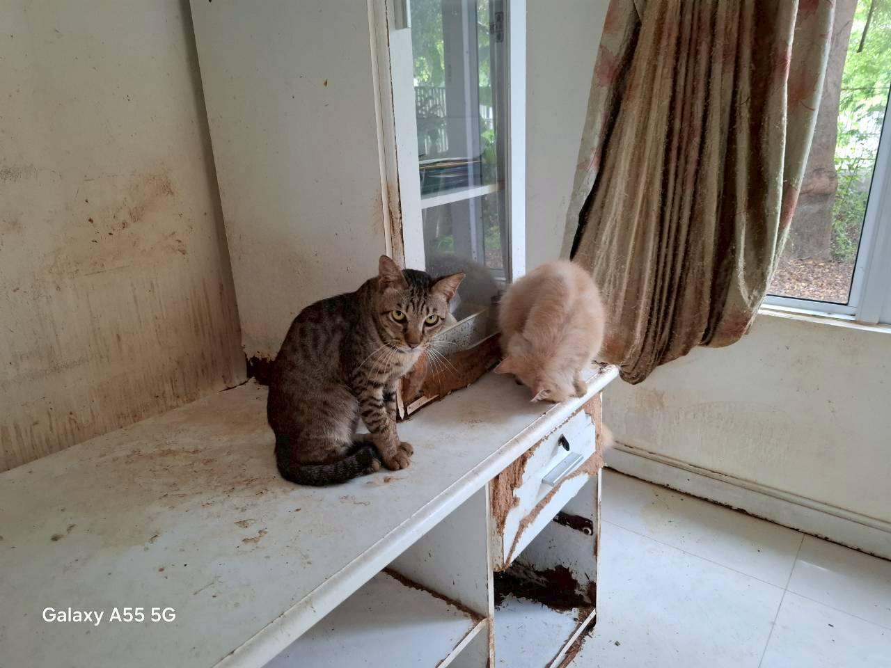 1. มีแมวป่วย 13 ตัว ส่วนใหญ่ป่วยด้วยโรคผิวหนัง และมีแผลจากการข่วนกันและเกาจากผิวหนังอักเสบติดเชื้อ และบางตัวตาอักเสบ บางตัวมีน้ำมูกใสจากการระคายเคือง อาการป่วยส่วนใหญ่เกิดจากสภาพแวดล้อมสกปรก โดยเฉพาะพื้นผิวบ้านที่เต็มไปด้วยอุจจาระและปัสสาวะ มีการหมักหมมเป็นเวลานาน นอกจากนี้พบว่าแอมโมเนียในอากาศภายในบ้านสูงมากถึง 22.6 ppm (ค่าที่สัตว์เริ่มป่วยคือ 20-25 ppm) แต่ไม่พบแมวตัวใดมีอาการปอดอักเสบ ทีมสัตวแพทย์จึงได้ทำการแยกแมวป่วยออกจากแมวปกติ ทำแผลและทำการฉีดยาปฏิชีวนะให้ (ทีมสัตวแพทย์ฯ จะลงพื้นที่ตรวจสุขภาพอีกครั้งช่วงต้นเดือนตุลาคม 2568)