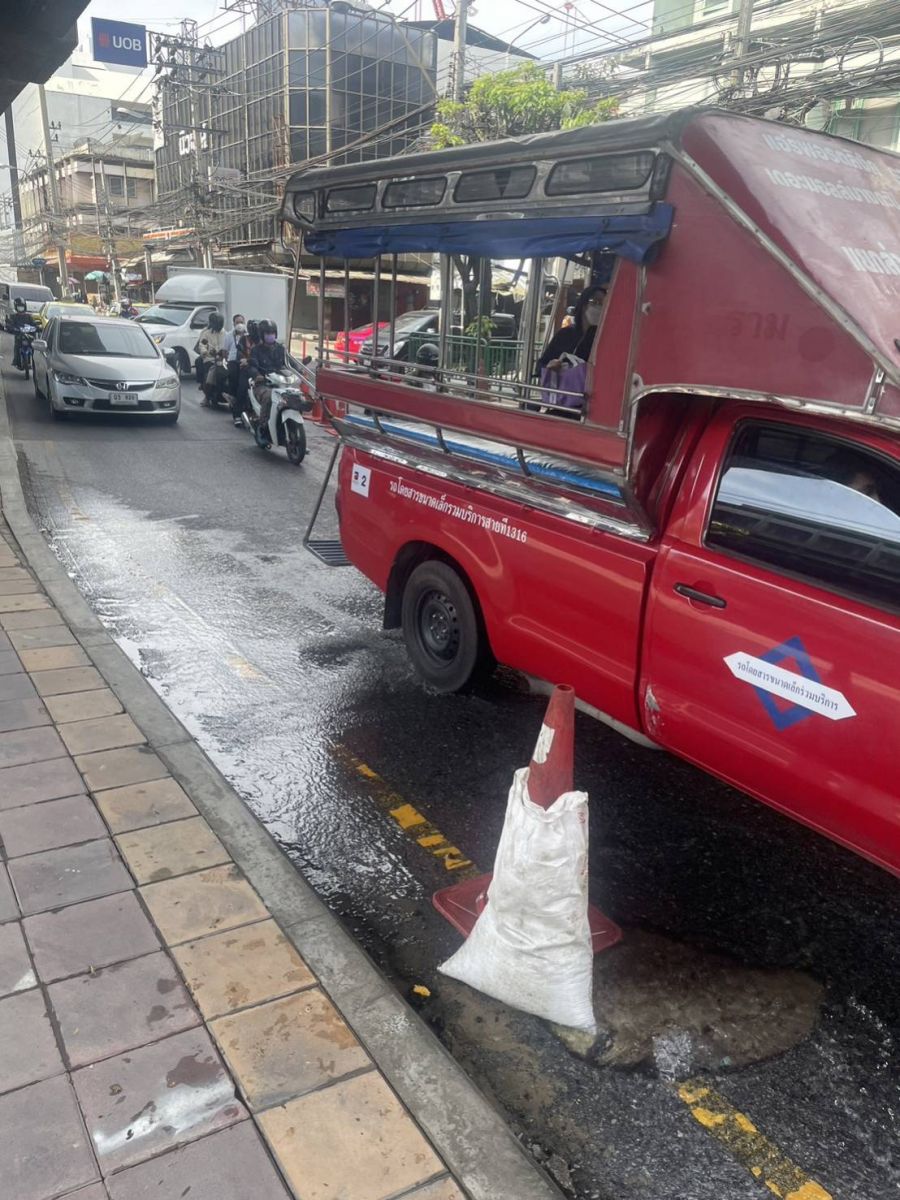 เวลานี้ ถนนรามคำแหง ขาออก ปากซอยรามคำแหง 21 มีท่อประปาแตก ถนนทรุดตัว ปิด 2 ช่องซ้าย มีน้ำไหลลงบนถนน วิ่งได้เลนขวาเลนเดียว ท้ายแถวสะสมแยกรามคำแหง