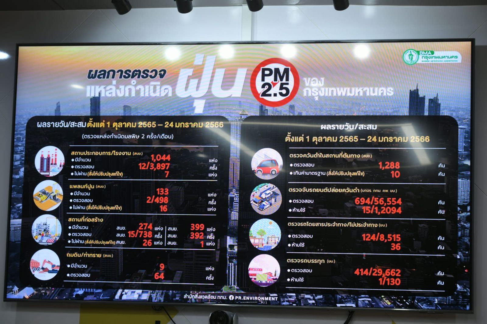 (25 ม.ค.66) เวลา 15.00 น. นายพรพรหม ณ.ส. วิกิตเศรษฐ์ ที่ปรึกษาของผู้ว่าราชการกรุงเทพมหานคร พร้อมด้วย นายแพทย์เอกชัย เพียรศรีวัชรา รองอธิบดีกรมอนามัย นายพันศักดิ์ ถิรมงคล ผู้อำนวยการกองจัดการคุณภาพอากาศและเสียง กรมควบคุมมลพิษ นางสาววรนุช สวยค้าข้าว รองผู้อำนวยการสำนักสิ่งแวดล้อม กรุงเทพมหานคร และ ดร.ศักดา ตรีเดช ผู้อำนวยการส่วนนวัตกรรมคุณภาพอากาศและเสียง กรมควบคุมมลพิษ ร่วมแถลงข่าวมาตรการรับมือฝุ่น PM2.5 สูงในกรุงเทพฯ ช่วงวันที่ 26-27 ม.ค. 66 ณ ห้องประชุม 2 ชั้น 2 สำนักสิ่งแวดล้อม อาคารสำนักการโยธา ศาลาว่าการกรุงเทพมหานครดินแดง