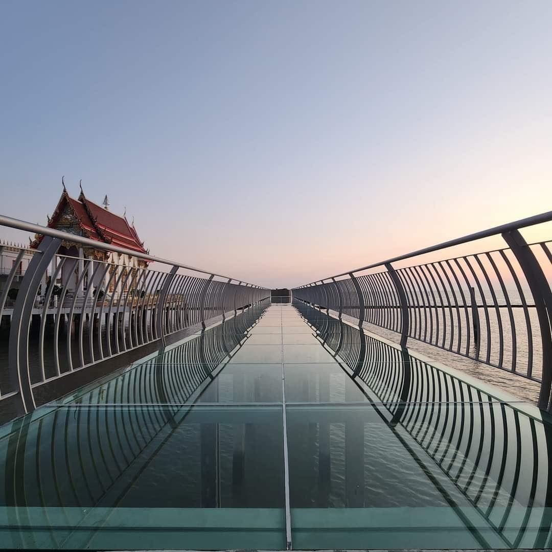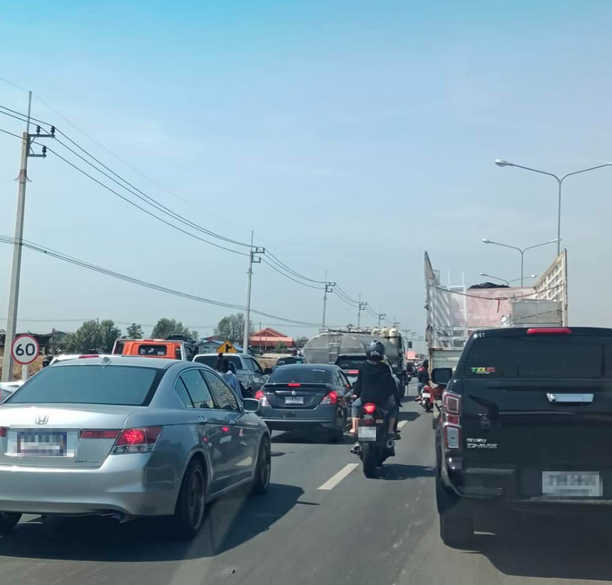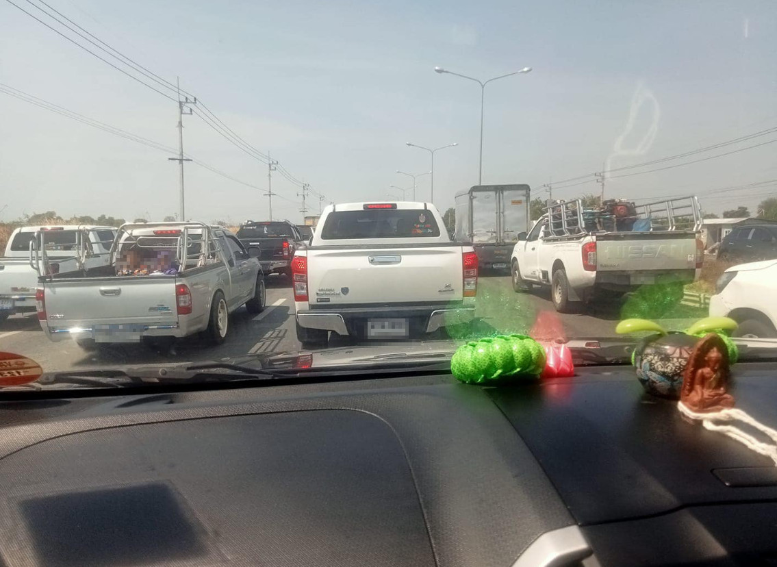 แห่เที่ยวแลนด์มาร์คแห่งใหม่ สะพานกระจก วัดหงษ์ทอง บางปะกง ขณะนี้ การจราจรถนนสุขุมวิท ทั้งขาเข้า ไปสมุทรปราการ หรือขาออก ไปบางปะกง ติดเหมือนกันทั้ง 2 ฝั่ง สมาชิกฯบอกว่า 2 ชั่วโมงแล้วยังไม่ถึงวัดติดอยู่ในซอย #รายงานจราจร #รถติด #FM91