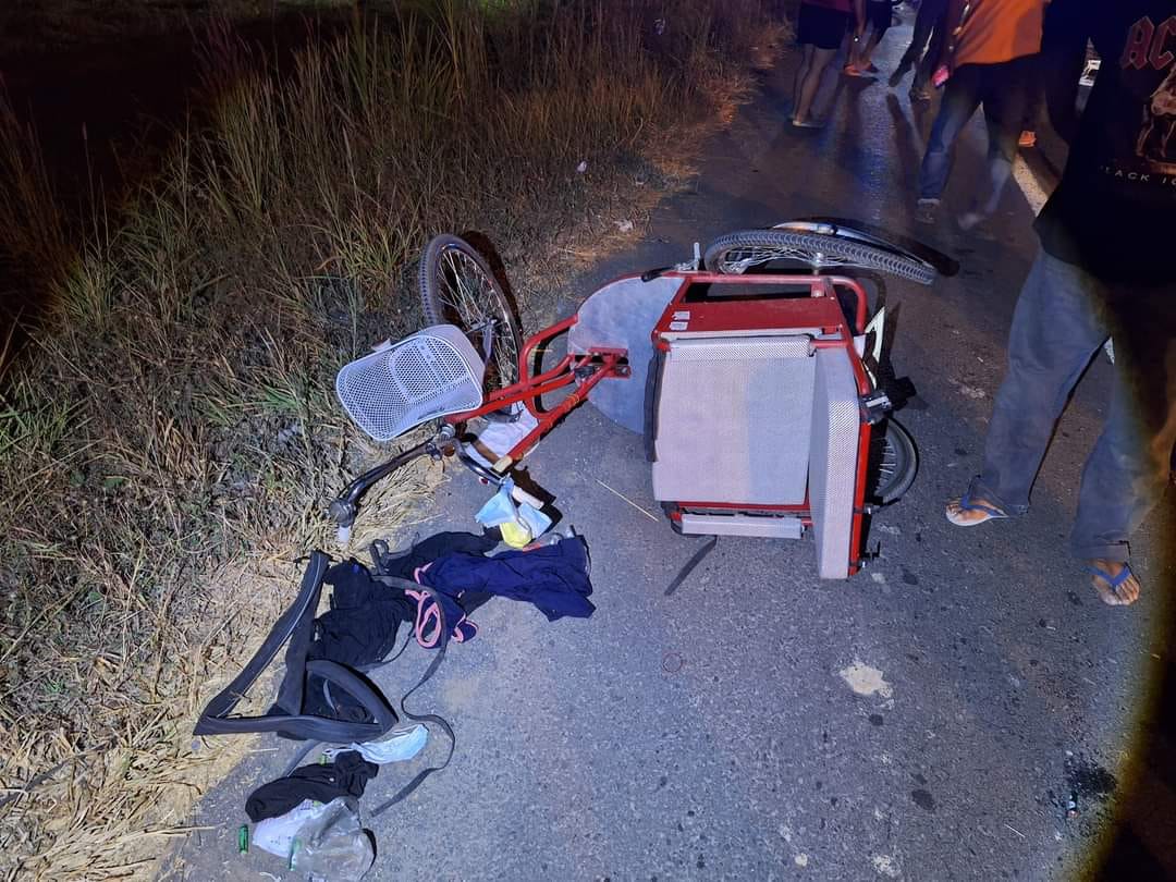 รถจักรยานยนต์ 3 คันเฉี่ยวกับรถสามล้อผู้พิการแล้วล้มคว่ำกลางถนน ก่อนมีรถกระบะขับตามหลังทับซ้ำ ทำให้มีผู้เสียชีวิต 1 คน จ.สุรินทร์