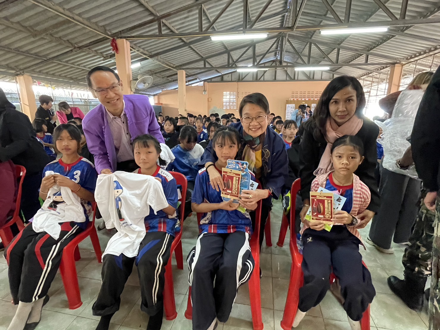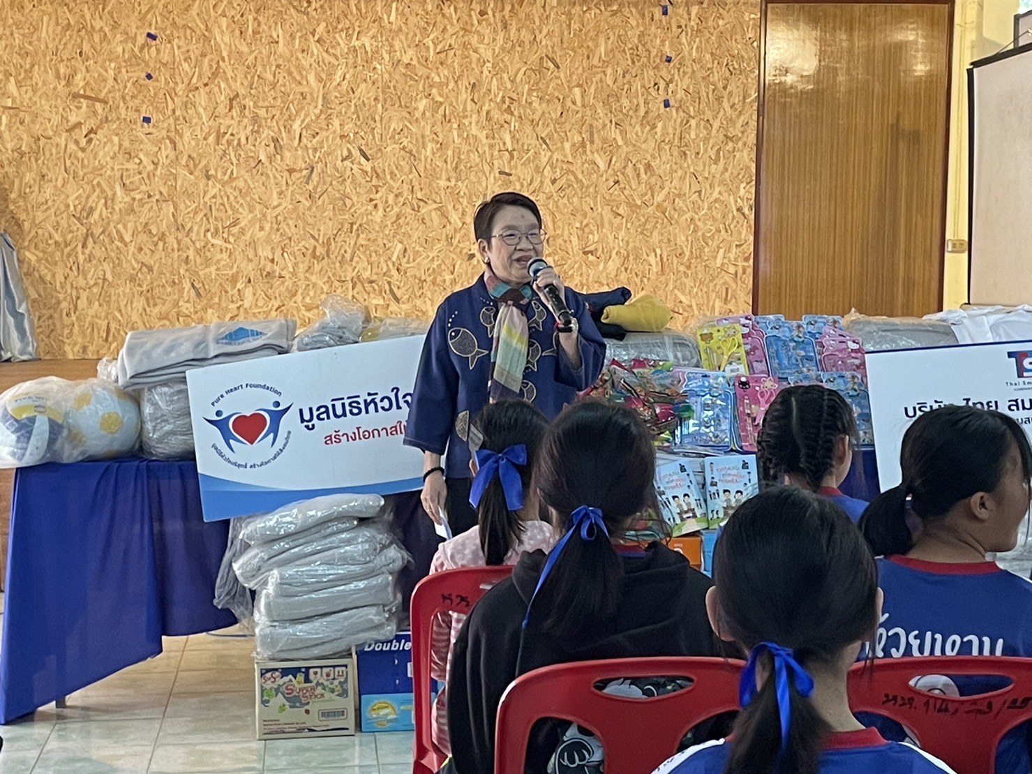 นางเธียรรัตน์ กล่าวว่า ในวันนี้ดิฉันในนามมูลนิธิหัวใจบริสุทธิ์ได้ร่วมมือกับ คุณกุลพรภัสร์ วงศ์มาจารภิญญา ประธานบริหารกลุ่มไทยสมายล์ กรุ๊ป นำเครื่องอุปโภคบริโภค อาทิ เครื่องเขียน อุปกรณ์การเรียน อุปกรณ์กีฬา เสื้อผ้า ผ้าห่ม มามอบให้กับน้องๆ นักเรียนที่โรงเรียนบ้านห้วยหานแห่งนี้ นอกจากนี้ ยังมีหน่วยงานในสังกัดกระทรวงแรงงานจังหวัดเชียงราย และสำนักอุทยานภูชี้ฟ้า นำกิจกรรมต่างๆ มาให้บริการ ได้แก่ สถาบันพัฒนาฝีมือแรงงานนานาชาติเชียงแสนนำกิจกรรมสาธิตทำขนมและประชาสัมพันธ์โครงการให้เด็กนักเรียน ม.3 ที่จบใหม่มาฝึกอาชีพตามโครงการตรวจการแผ่นดิน สำนักงานจัดหางานจังหวัดเชียงราย ออกบูธประชาสัมพันธ์โครงการ 3 ม. มีงาน มีเงิน มีวุฒิการศึกษาเพิ่ม เพื่อส่งเสริมให้ผู้ที่ต้องการความก้าวหน้าในหน้าที่การงาน และความมั่นคงในชีวิต ได้ศึกษาต่อในสาขาวิชาที่ต้องการ เพื่อให้ได้วุฒิการศึกษาที่สูงขึ้น โดยได้ทำงานในสถานประกอบการ ได้รับค่าจ้าง และสวัสดิการต่าง ๆ ด้วย