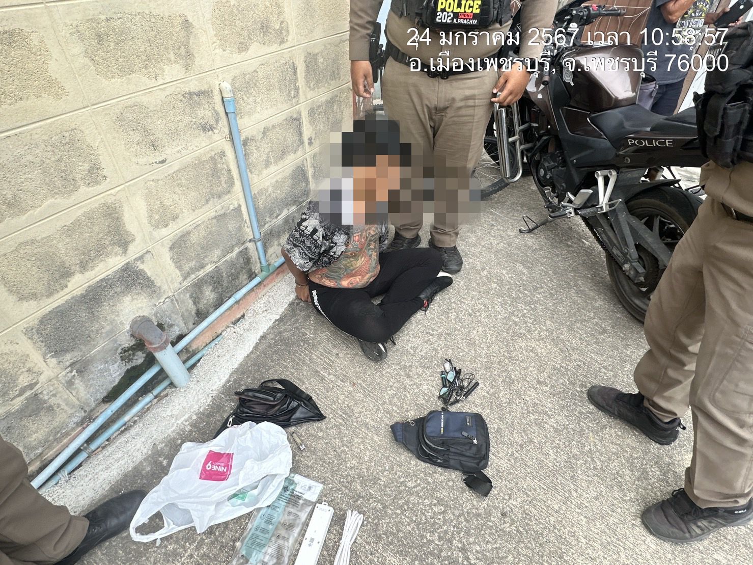 จึงสั่งการ สภ.เมืองเพชร แจ้งสายตรวจเมืองเพชร 203 และสายตรวจรถจยย. เข้าตรวจสอบ และพบชายต้องสงสัยขับขี่รถจักรยาน หลบหนี ออกมาจากร้านดังกล่าว สายตรวจจึงขับรถติดตาม จนสามารถจับกุมตัวได้ และนำตัวไปตรวจสอบที่ร้านสะดวกซื้อ ซีเจ เพื่อให้พนักงานตรวจสอบทรัพย์สิน และควบคุมตัวไปดำเนินคดีที่ สภ.เมืองเพชรบุรี สำหรับผู้ก่อเหตุทราบว่าได้ก่อเหตุลักษณะนี้และถูกจับกุมมาแล้วหลายครั้ง แต่ยังไม่เข็ดหลาบ