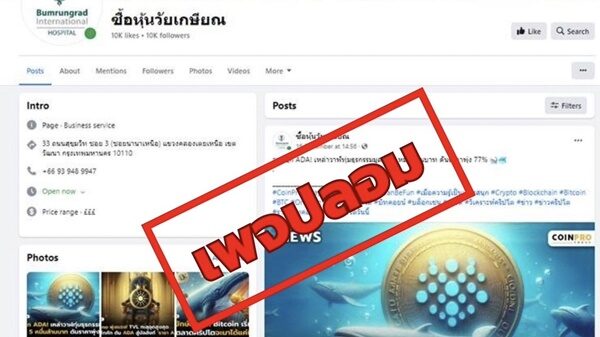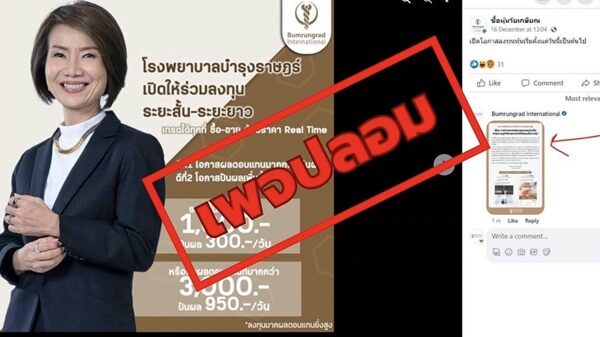 โดยอ้างว่าโรงพยาบาล เปิดให้ลงทุนในรูปแบบต่าง ๆ รวมถึงเปิดจำหน่ายกองทุนหุ้นโดยได้รับผลตอบแทนไวและมีกำไรสูง โดยมิจฉาชีพมักใช้วิธีการบูสต์โพสต์โฆษณาบนเฟซบุ๊ก หากมีเหยื่อหลงเชื่อก็จะให้แอดไลน์ที่ปลอมขึ้นมา