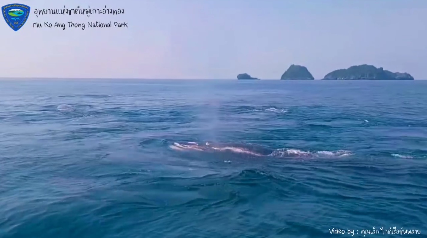 5 กุมภาพันธ์ 2567 เพจ ประชาสัมพันธ์ กรมอุทยานแห่งชาติ สัตว์ป่า และพันธุ์พืช และ อุทยานแห่งชาติหมู่เกาะอ่างทอง เผยแพร่คลิปของ "วาฬบรูด้า" ความยาว 01.31 นาที ที่ถ่ายโดยไกด์ท่องเที่ยว พร้อมระบุรายละเอียดว่า "ตามติดวิถีชีวิต วาฬบรูด้า ทะเลอ่าวไทยกันอย่างต่อเนื่อง จากเมื่อวานที่พบวาฬบรูด้า จำนวน 4 ตัว เข้ามาหากิน บริเวณพื้นที่รอยต่อระหว่างเกาะท้ายเพลาและกลุ่มเกาะว่าว ซึ่งเป็นพื้นที่เตรียมการผนวกเป็นอุทยานแแห่งชาติหมู่เกาะอ่างทอง วันนี้เรายังได้รับคลิปวีดีโอสุดประทับใจโดยคุณเล็ก ไกด์เรือซัพพลาย ที่ถ่ายไว้ได้เมื่อวาน ( 4 ก.พ.2567) เวลา 11.30 น. ที่พิกัดใกล้เคียงกันคือ 47 P 575115 E 1079019 N และคาดว่าเป็นวาฬบรูด้าฝูงเดียวกัน จำนวน 5 ตัว กำลังช่วยกันต้อนฝูงปลากะตัก เหมือนการเต้นระบำใต้น้ำล้อมกันเป็นวงกลม โดยวาฬบรูด้าจะกินปลาที่รวมกันเป็นฝูงแต่ว่ายน้ำไม่เร็วนัก เช่น ปลากะตัก ปลาอกกะแล้ ปลาอีโกย (ปลาหลังเขียวชนิดหนึ่ง) ปลาทูขนาดเล็ก เป็นต้น