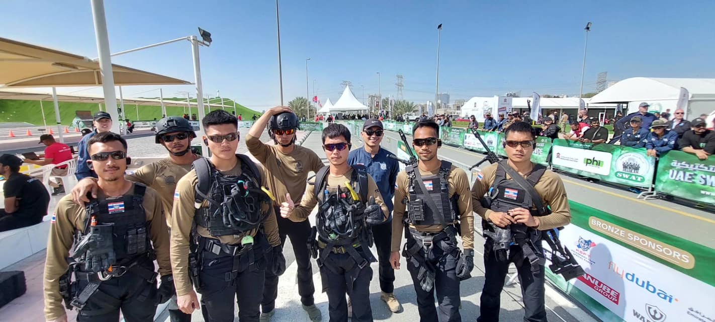 พล.ต.อ.ต่อศักดิ์ สุขวิมล ผู้บัญชาการตำรวจแห่งชาติ เดินทางไปยังเมืองดูไบ ประเทศสหรัฐอาหรับเอมิเรตส์ เพื่อร่วมชมการแข่งขัน UAE SWAT Challenge 2024 และให้กำลังใจทีมตำรวจไทย ในการแข่งขันเฟ้นหาสุดยอดทีมปฏิบัติการพิเศษระดับโลก ซึ่งปีนี้มี 30 ประเทศส่งทีมหน่วยปฏิบัติการเข้าแข่งขัน รวม 73 ทีม