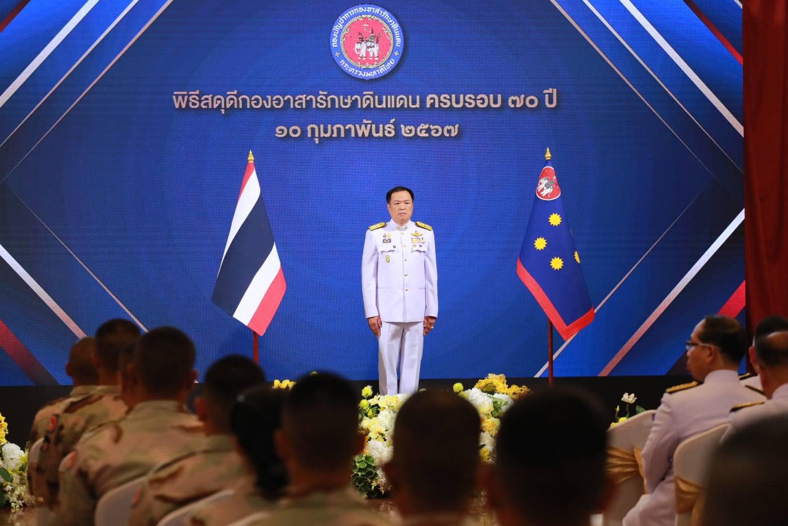วันที่ 10 กุมภาพันธ์ 2567 เวลา 09.00 น. ณ พระที่นั่งนงคราญสโมสร นายกองใหญ่ อนุทิน ชาญวีรกูล ผู้บัญชาการกองอาสารักษาดินแดน เป็นประธานในพิธีสดุดีกองอาสารักษาดินแดน เนื่องในวันคล้ายวันสถาปนากองอาสารักษาดินแดน ครบรอบ 70 ปี โดยมี นายกองเอกทรงศักดิ์ ทองศรี นายกองเอกชาดา ไทยเศรษฐ์ นางสาวไตรศุลี ไตรสรณกุล โฆษกกระทรวงมหาดไทย พร้อมด้วย ผู้บังคับบัญชา เจ้าหน้าที่ และสมาชิกกองอาสารักษาดินแดน สังกัดกองบัญชาการกองอาสารักษาดินแดน และแขกผู้มีเกียรติ เข้าร่วมพิธี โดยมี นายกองเอก อรรษิษฐ์ สัมพันธรัตน์ หัวหน้าฝ่ายอำนวยการ กองบัญชาการกองอาสารักษาดินแดน กล่าวรายงาน