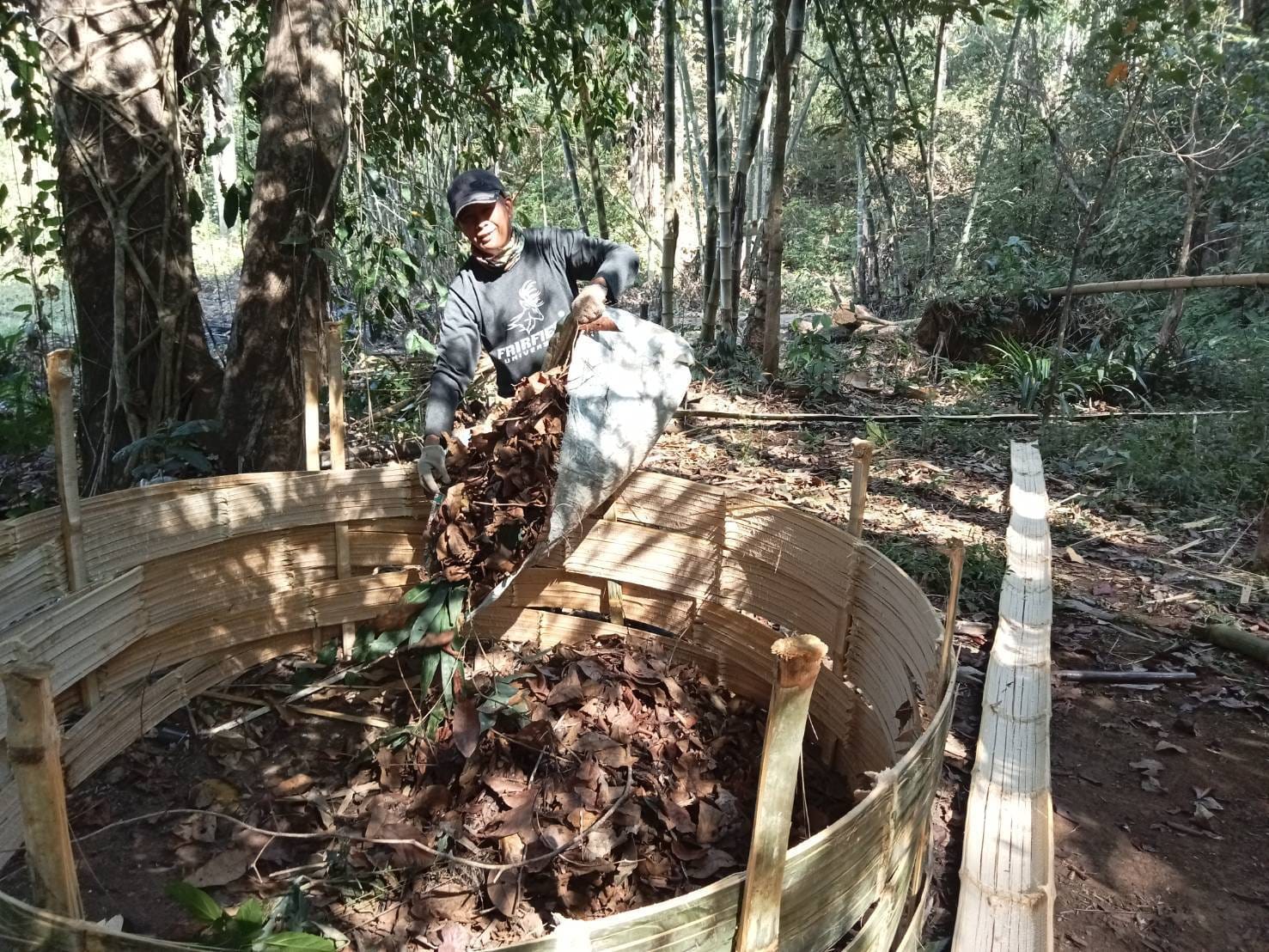 2. บ้านหนองขาวกลาง ม.3 ต.ห้วยปูลิง ผู้นำชุมชนและชาวบ้านได้ร่วมจัดทำเสวียนเพื่อกักเก็บใบไม้ จำนวน 4 เสวียน โดยสร้างใหม่ จำนวน 2 เสวียน และซ่อมแซมของเดิม จำนวน 2 เสวียน