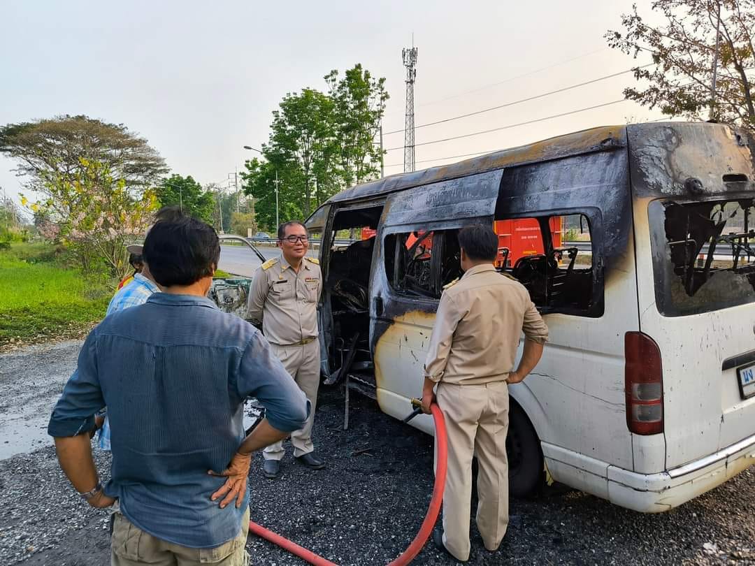 ไฟไหม้รถรับ-ส่งนักเรียน เสียหายวอดทั้งคัน โชคดีไร้บาดเจ็บหรือเสียชีวิต จ.ระยอง