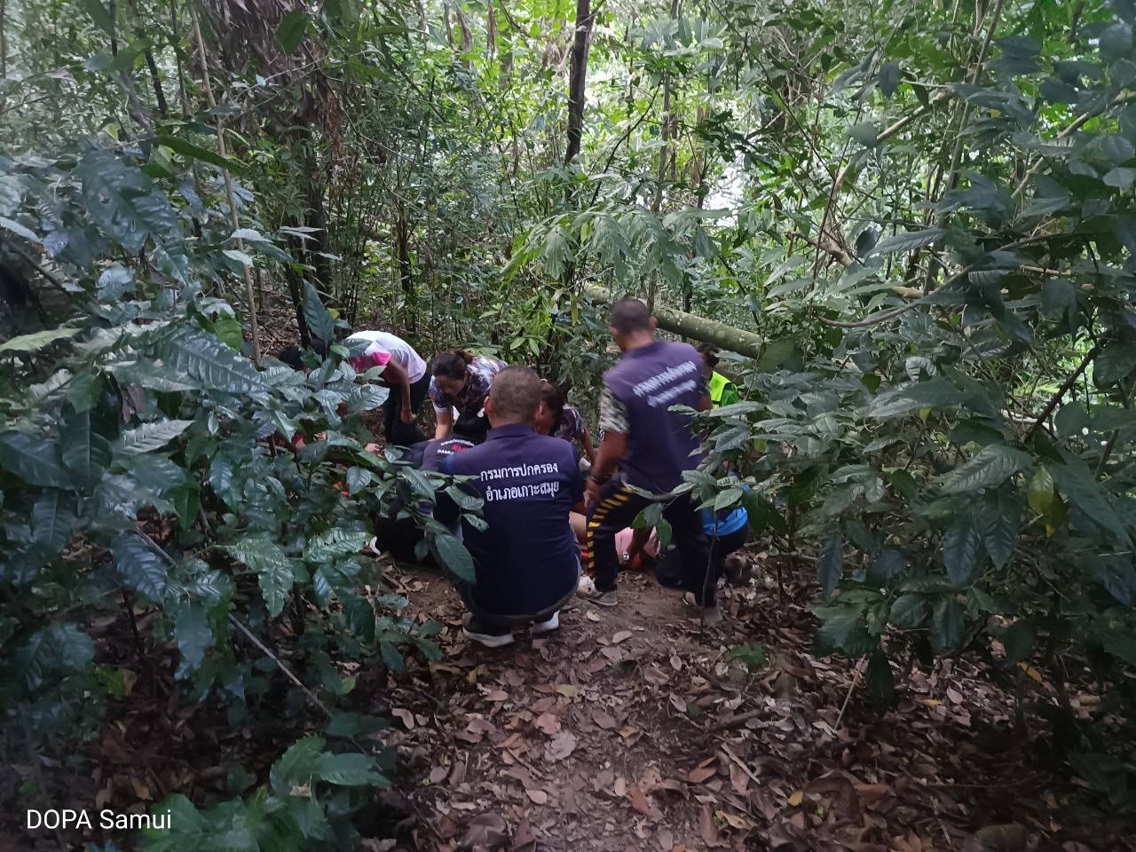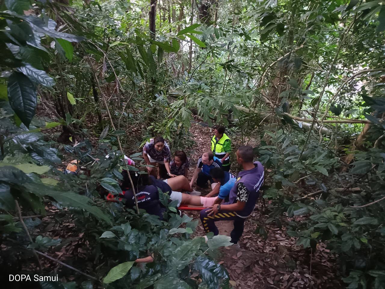 วันที่ 22 กุมภาพันธ์ 2567 เวลา 17:00 น. ภายใต้การอำนวยการของดร.กัมปนาท กลิ่นเสาวคนธ์ นายอำเภอเกาะสมุย นายชัชชัย มณี ปลัดอำเภอหัวหน้ากลุ่มงานบริหารงานปกครอง ได้มอบหมายนายสุริยา มาดี ปลัดอำเภอหัวหน้าฝ่ายความมั่นคงอำเภอเกาะสมุย พร้อมด้วยชุดปฏิบัติการพิเศษอำเภอเกาะสมุย ร่วมกับเจ้าหน้าที่มูลนิธิกุศลสงเคราะห์เกาะสมุย กู้ชีพเทศบาลนครเกาะสมุย เข้าช่วยเหลือนักท่องเที่ยวที่ได้รับบาดเจ็บ หลังจากได้รับแจ้งขอความช่วยเหลือจากหน่วยกู้ชีพเทศบาลนครเกาะสมุย ว่ามีนักท่องเที่ยว ลื่นล้มบนเขาน้ำตกหินลาดได้รับบาดเจ็บข้อเท้าด้านขวาผิดรูป ไม่สามารถเดินได้ จึงขอความช่วยเหลือมา ในจุดที่เกิดเหตุเจ้าหน้าที่ฯต้องใช้การเดินเท้าขึ้นไปประมาณ ครึ่งชั่วโมง จึงถึงที่เกิดเหตุ