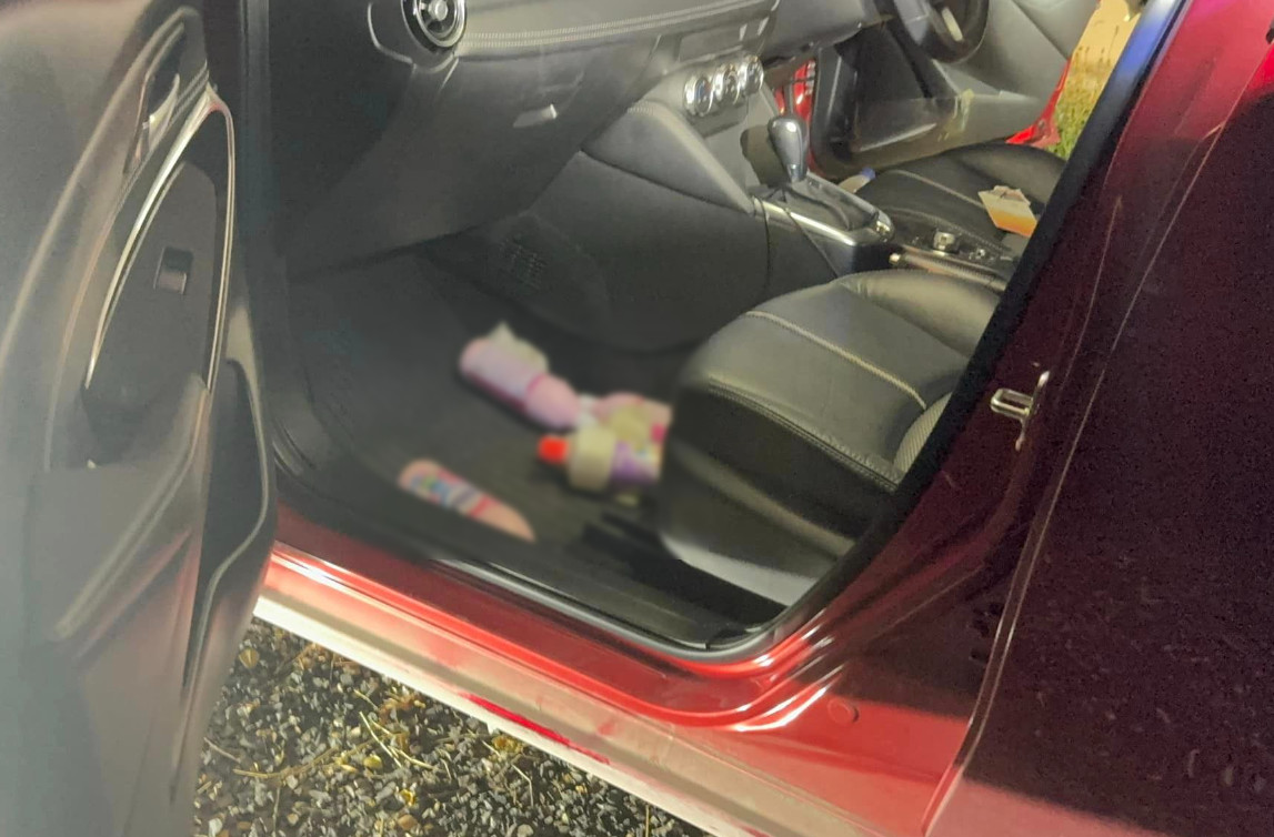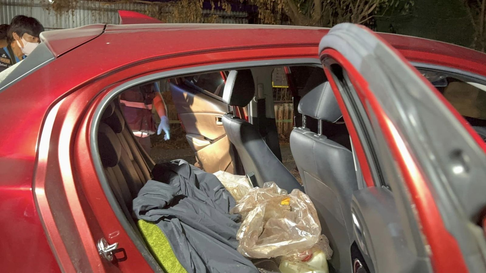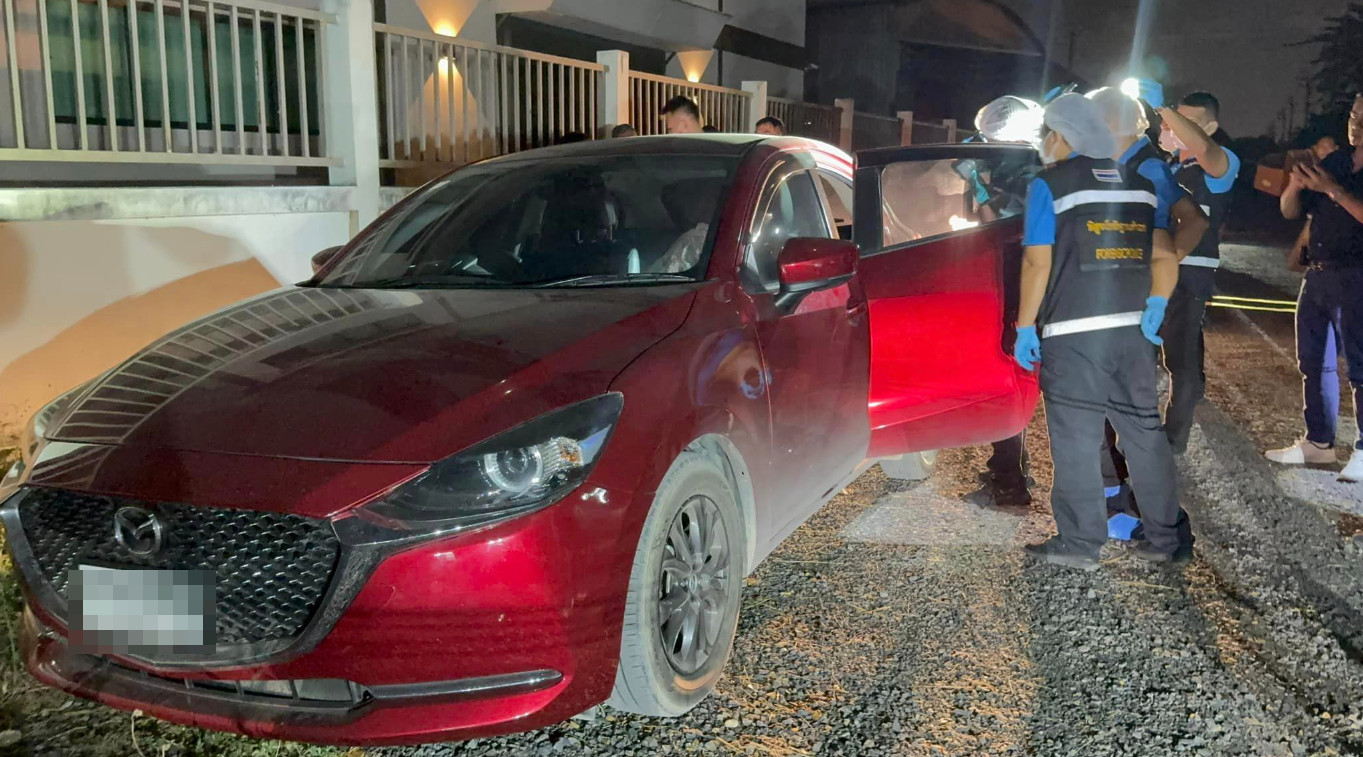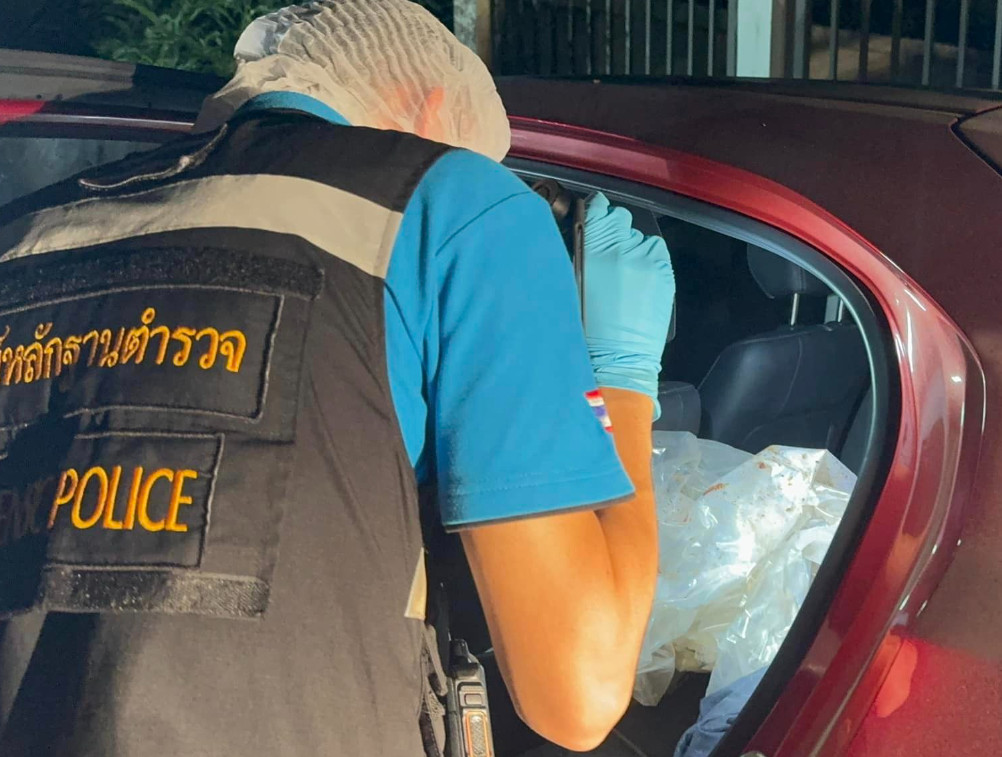 จากการตรวจสอบภายในรถ พบขวดน้ำยาทำความสะอาดห้องน้ำ น้ำยาดับกลิ่น ต่าง ๆ อยู่บริเวณที่วางเท้าด้านหน้าฝั่งผู้โดยสาร ส่วนที่ด้านเบาะหลังพบถุงพลาสติกขนาดใหญ่ และ ผ้าเปื้อนเลือด ที่คาดว่าคนร้ายใช้ในการห่อศพเพื่อนำมาทิ้ง นอกจากนี้ยังพบกล่องบรรจุปืนแต่ไม่พบตัวปืน ถูกวางอยู่ที่เบาะหลัง และรองเท้าชนิดเดียวกันที่พบในถังขยะใกล้บ้านที่เกิดเหตุตกอยู่หนึ่งข้าง ส่วนกล้องวงจรปิดหน้ารถนั้นพบว่ามีการถอดกราดออกจากตัวกล้องไป