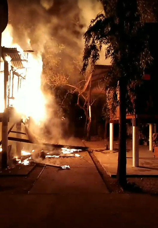 ไฟไหม้กุฏิพระ วัดตำหนักใต้ วอดหมด 1 หลังและลุกลามกุฏิข้างเคียงเสียหายบางส่วน จนท.ถูกไฟช็อตบาดเจ็บ จ.นนทบุรี