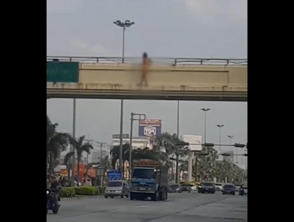 สาวพยายามกระโดดสะพานลอยหวังฆ่าตัวตาย พลเมืองดีช่วยทัน ประสาน ตร.ส่งกลับบ้าน พบมีอาการตาเหม่อลอย พูดจาไม่รู้เรื่อง