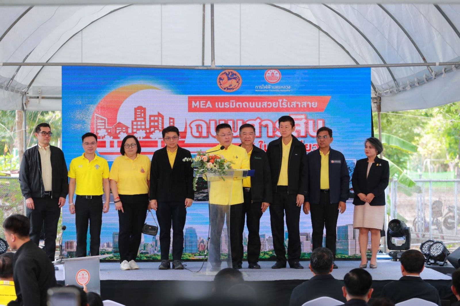 วันนี้ (8 มีนาคม 2567) นายขจร ศรีชวโนทัย อธิบดีกรมส่งเสริมการปกครองท้องถิ่น ในฐานะประธานกรรมการ MEA หรือการไฟฟ้านครหลวง เป็นประธานงาน "MEA เนรมิตถนนสวยไร้เสาสาย ถนนสารสิน ในคืนเดียว" พร้อมด้วย นายชัชชาติ สิทธิพันธุ์ ผู้ว่าราชการกรุงเทพมหานคร และคณะผู้บริหารหน่วยงานภาคีเครือข่าย โดยมี นายวิลาศ เฉลยสัตย์ ผู้ว่าการ MEA กล่าวรายงานผลความสำเร็จโครงการเปลี่ยนระบบสายไฟฟ้าอากาศเป็นสายไฟฟ้าใต้ดิน ถนนสารสิน ณ สวนลุมพินี เขตปทุมวัน กรุงเทพมหานคร
