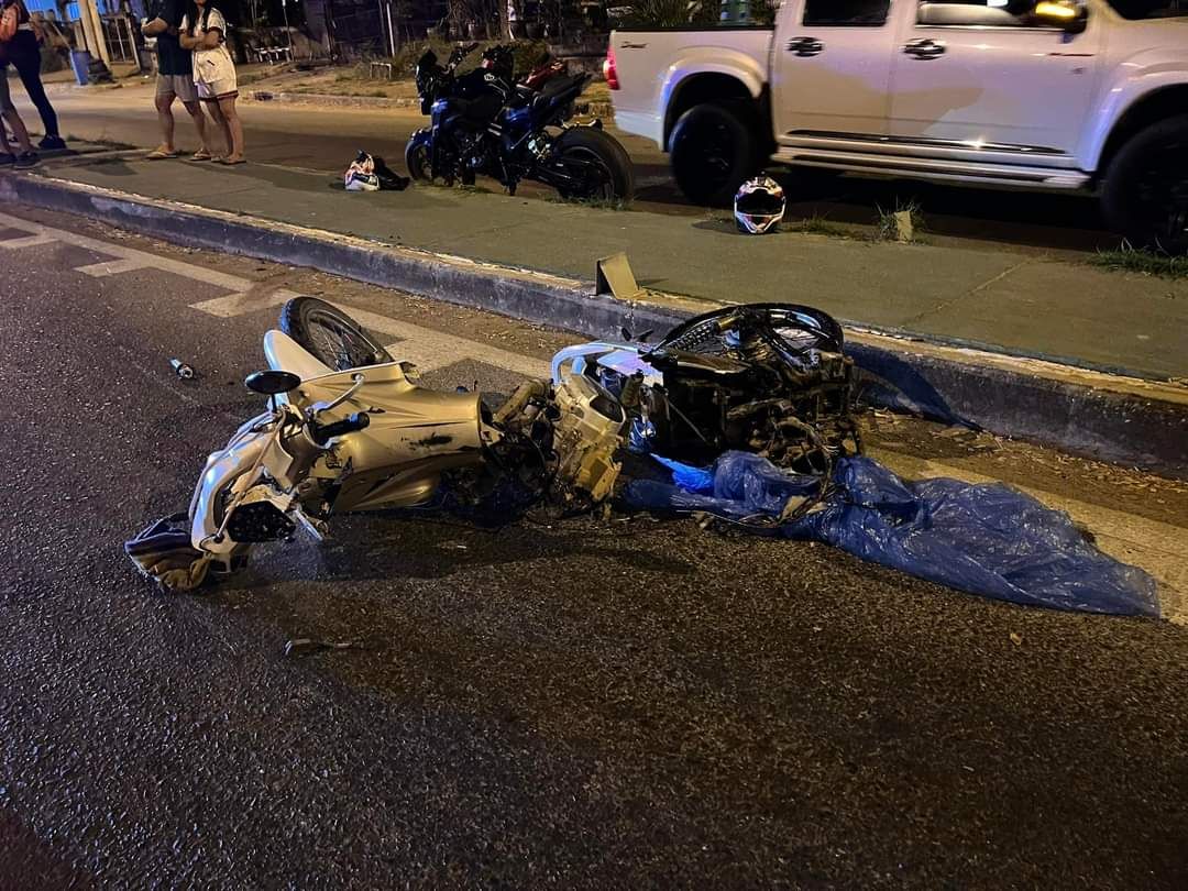ที่เกิดเหตุ พบรถจักรยานยนต์ ยามาฮ่า อาร์-1 สีดำ ชนกับรถจักรยานยนต์ ฮอนด้า เวฟ สีขาว ป้ายทะเบียน 154 ขอนแก่น ตรวจสอบพบว่ามีผู้เสียชีวิต 1 คน เป็นชายไทย อายุ 40-45 ปี และมีผู้บาดเจ็บอีก 1 รายเป็นชายไทย อายุ 26 ปี มีอาการสาหัส ทางอาสาสมัครช่วยเหลือปั๊มหัวใจ ก่อนนำส่ง รพ.ศรีนครินทร์ และได้เสียชีวิตในเวลาต่อมา ในส่วนของสาเหตุอยู่ระหว่างการสอบสวนของเจ้าหน้าที่ตำรวจ สภ.เมืองขอนแก่น