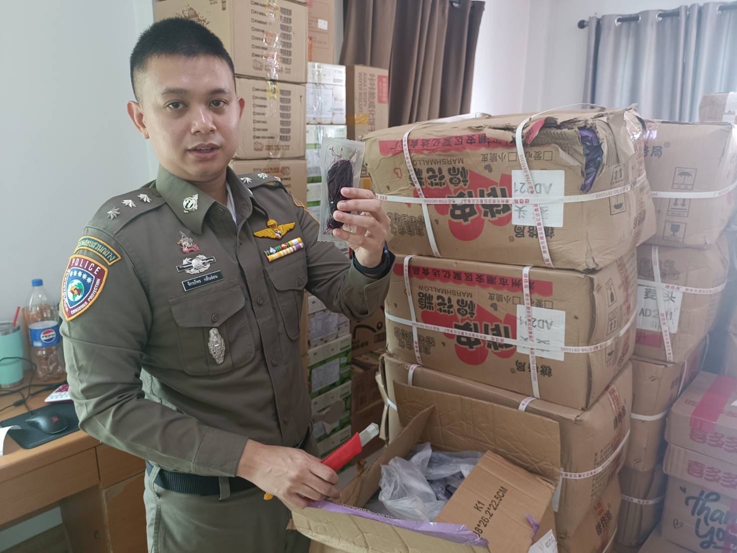 บุกยึดแหล่งจำหน่ายขนมเยลลี่องุ่นเคียวโฮออนไลน์ ตรวจยึดกว่า 4 หมื่นชิ้น รวมมูลค่ากว่า 3 แสนบาท