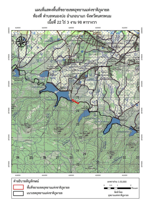 วันที่ 21 มีนาคม 2567 นายชัยวัฒน์ ลิ้มลิขิตอักษร ผู้อำนวยการสำนักอุทยานแห่งชาติ เปิดเผยว่า อุทยานแห่งชาติภูผายล จะเปิดรับฟังความคิดเห็นและการมีส่วนร่วมของผู้มีส่วนได้เสีย ชุมชนที่เกี่ยวข้อง และประชาชน ในการขยายเขตอุทยานแห่งชาติอุทยานแห่งชาติภูผายล จังหวัดนครพนม จังหวัดมุกดาหาร โดยเตรียมการขยายพื้นที่อุทยานแห่งชาติภูผายล จำนวน 5 พื้นที่ รวมเนื้อที่ประมาณ 3,727 ไร่ 3 งาน 53 ตารางวา รายละเอียดดังนี้ จุดที่ 1 บริเวณอ่างเก็บน้ำห้วยโท ท้องที่บ้านโพนงาม ตำบลหนองบ่อ อำเภอนาแก จังหวัดนครพนม เนื้อที่ประมาณ 22 ไร่ 3 งาน 98 ตารางวา อยู่ในเขตป่าตามพระราชบัญญัติป่าไม้ พุทธศักราช 2484 (ป่าเทือกเขาภูพาน) จุดที่ 2 บริเวณป่าภูพานน้อย ท้องที่บ้านดอนพัฒนา ตำบลพิมาน อำเภอนาแก จังหวัดนครพนม เนื้อที่ประมาณ 119 ไร่ 40 ตารางวา อยู่ในเขตป่าตามพระราชบัญญัติป่าไม้ พุทธศักราช 2484 (ป่าเทือกเขาภูพาน) จุดที่ 3 บริเวณอ่างเก็บน้ำห้วยไร่ ท้องที่ครอบคลุมระหว่างบ้านโพนสว่าง ตำบลพังแดง และบ้านใหม่ ตำบลดงหลวง อำเภอดงหลวง จังหวัดมุกดาหาร เนื้อที่ประมาณ 682 ไร่ 1 งาน (อยู่ในเขตป่าสงวนแห่งชาติป่าดงภูพาน) จุดที่ 4 บริเวณป่าลำห้วยบางทราย ท้องที่บ้านเกษตรสมบูรณ์ ตำบลกกตูม อำเภอดงหลวง จังหวัดมุกดาหาร เนื้อที่ประมาณ 1,371 ไร่ (อยู่ในเขตป่าสงวนแห่งชาติป่าดงภูพาน) และ จุดที่ ๕ บริเวณป่าลำห้วยประสาน ท้องที่บ้านป่าไม้พัฒนา ตำบลกกตูม อำเภอดงหลวง จังหวัดมุกดาหาร เนื้อที่ประมาณ 1,518 ไร่ 3 งาน 44 ตารางวา (อยู่ในเขตป่าสงวนแห่งชาติป่าดงภูพาน)