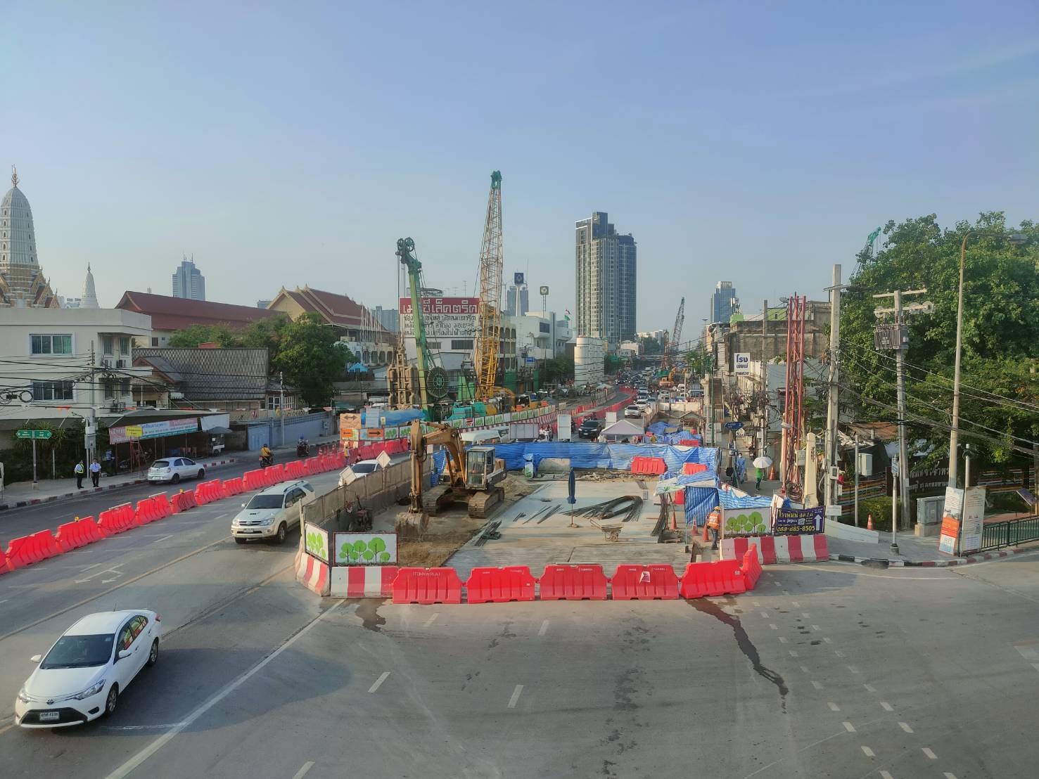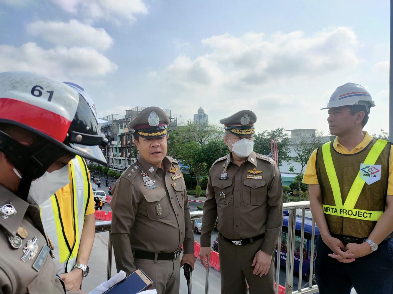 พล.ต.ต.ธวัช วงศ์สง่า รอง ผบช.น. กล่าวว่า รฟม. และผู้รับจ้างฯ โครงการรถไฟฟ้าสายสีม่วงฯ ได้นำเสนอแผนการจัดจราจร และหารือแนวทางการปิดเบี่ยงจราจรกับ บช.น. และสถานีตำรวจในพื้นที่อย่างต่อเนื่อง เพื่อระบายการจราจรฝั่งขาออก จากฝั่งพระนครมุ่งหน้าฝั่งธนบุรี ซึ่งมักจะมีปริมาณรถมากในช่วงเวลาดังกล่าว จึงมีความจำเป็นต้องบริหารและจัดการจราจรให้มีประสิทธิภาพมากที่สุด โดยระหว่างการดำเนินงานปิดเบี่ยง จะมีการจัดสรรกำลังเจ้าหน้าที่ตำรวจจราจร พร้อมด้วยอาสาจราจรของผู้รับจ้างฯ เพื่อร่วมกันอำนวยความสะดวกด้านการจราจรให้กับประชาชนที่ใช้เส้นทาง รวมถึงจะร่วมกันเฝ้าระวังและประเมินสถานการณ์ตลอดระยะการดำเนินงาน