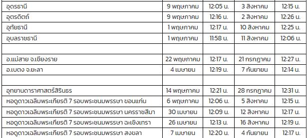 ดูข้อมูลการเกิดปรากฏการณ์ดวงอาทิตย์ตั้งฉากทั้ง 77 จังหวัด ในประเทศไทยได้