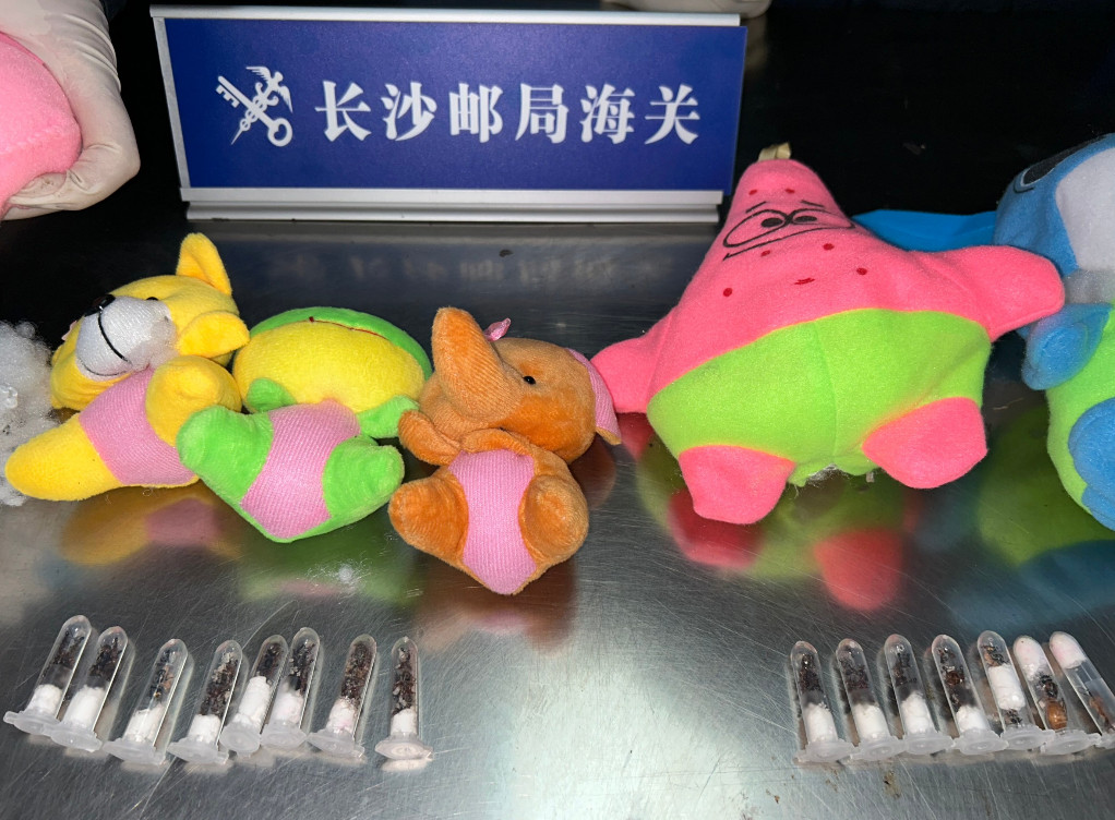 ฉางซา, 3 เม.ย. (ซินหัว) -- วันพุธ (3 เม.ย.) หน่วยบริการศุลกากรไปรษณีย์ฉางซาในมณฑลหูหนานทางตอนกลางของจีน ตรวจยึดมดมีชีวิตจำนวน 145 ตัว ซึ่งพบถูกซุกซ่อนอยู่ในหลอด จำนวน 19 หลอด ภายในตุ๊กตายัดนุ่นหลายตัว โดยเป็นมด 6 สายพันธุ์ที่ไม่มีการแพร่กระจายพันธุ์ตามธรรมชาติในจีน