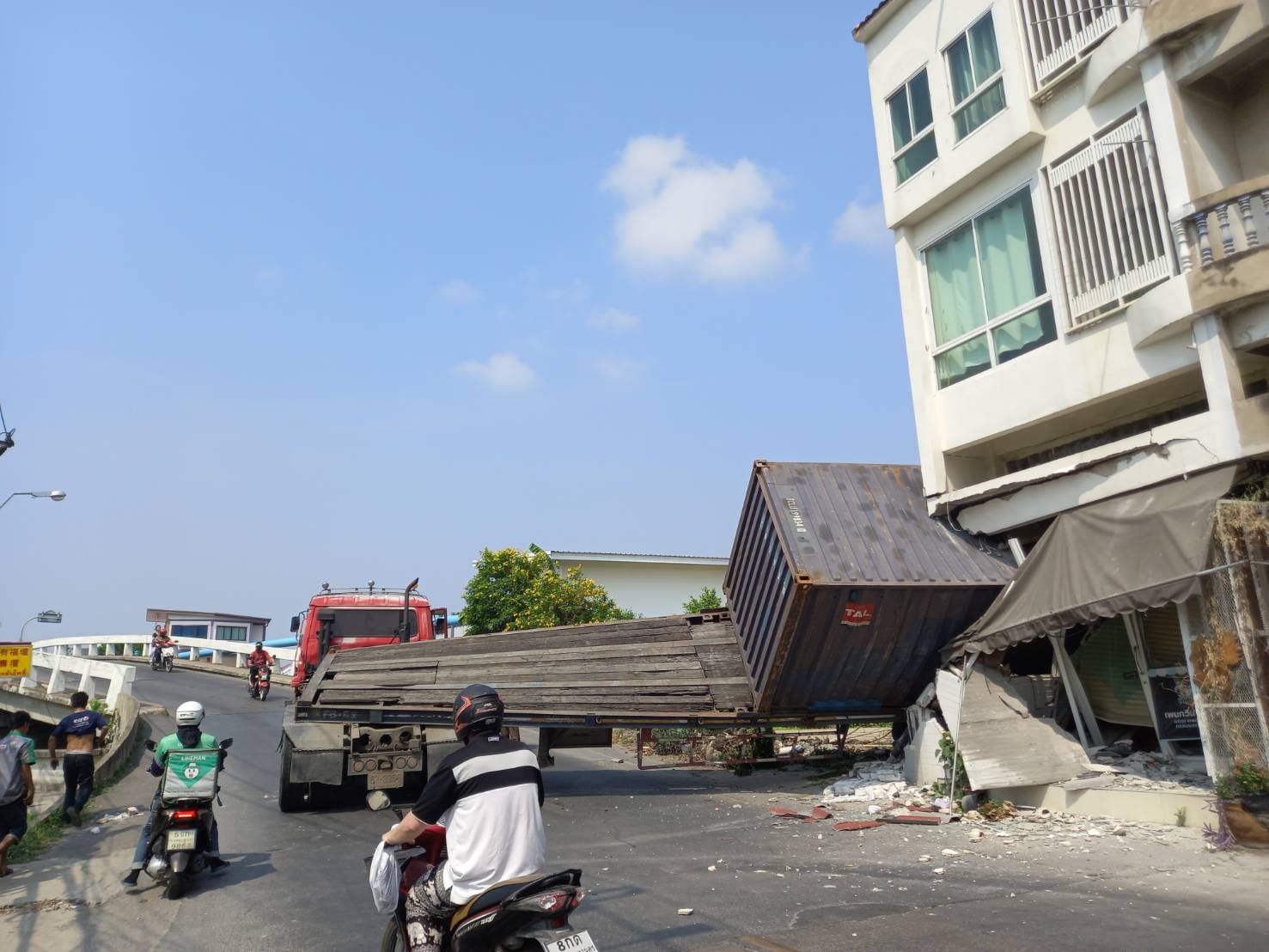 เหตุการณ์ดังกล่าว เป็นรถพ่วง บรรทุกตู้คอนเทนเนอร์ มีปัญหาขัดข้อง จอดค้างบนสะพาน จากนั้นไหลลงมา ชนบ้านเรือนประชาชน ตู้คอนเทนเนอร์ค้ำตัวอาคารอยู่ หากนำตู้ออก อาจทำให้ตึกอาจถล่มลงมาได้ ยังไม่พบว่ามีใครได้รับบาดเจ็บ