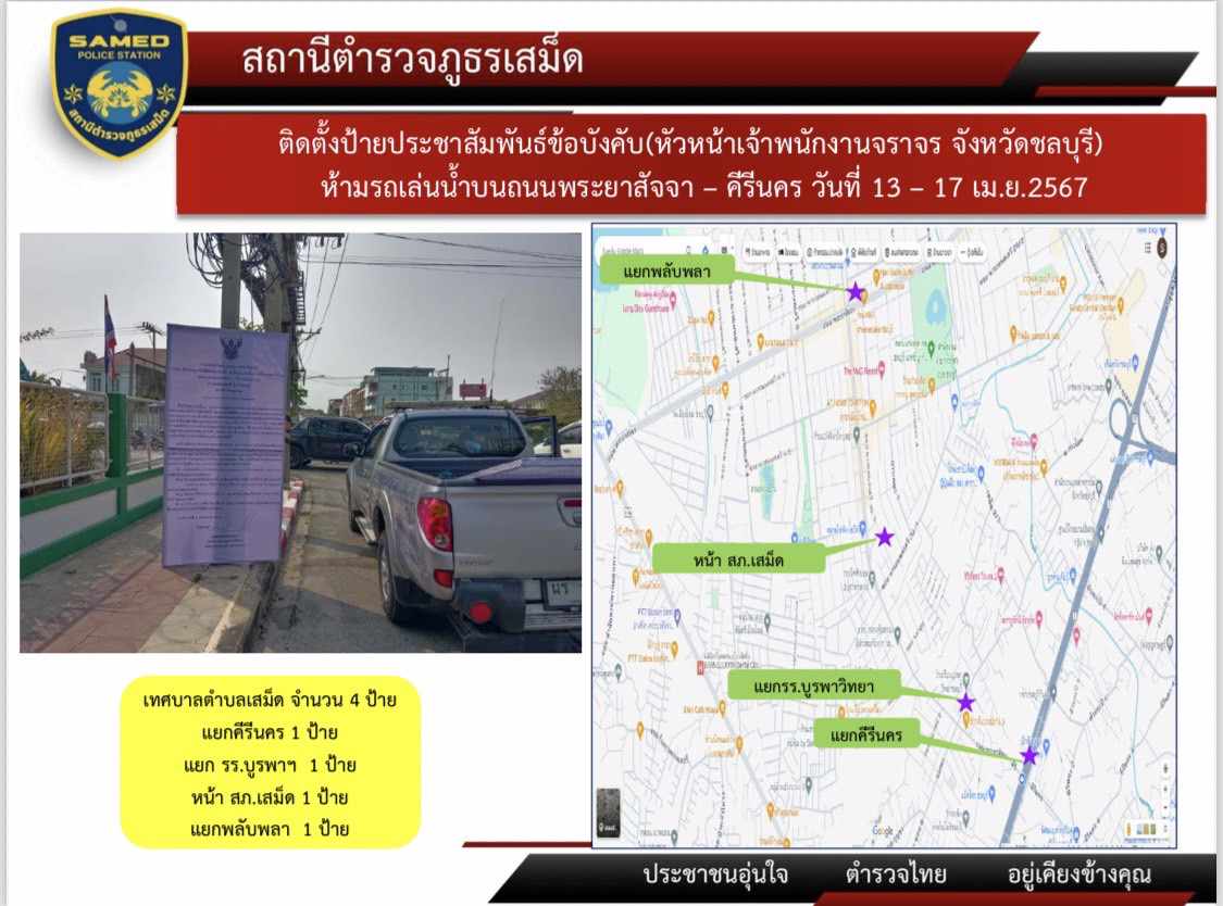 กรณีแผนการรักษาความปลอดภัยและอำนวยการจราจร เทศกาลสงกรานต์ 2567 และงานวันไหลบางแสน วันที่ 16 - 17 เมษายน 2567