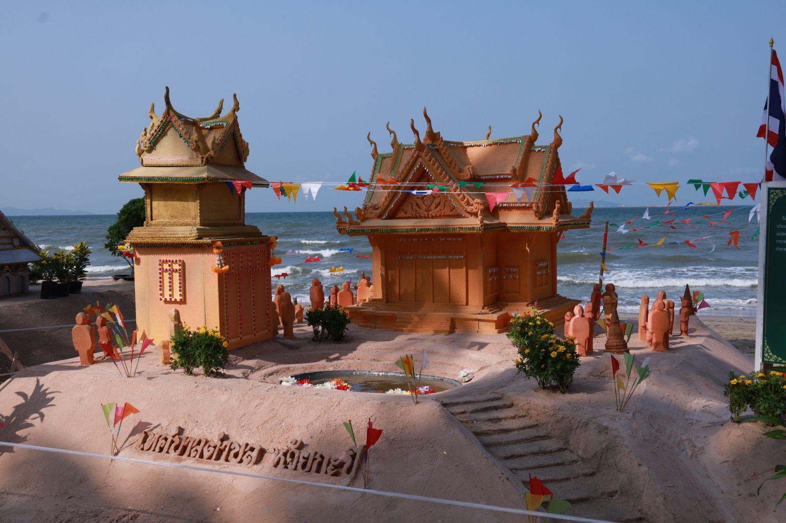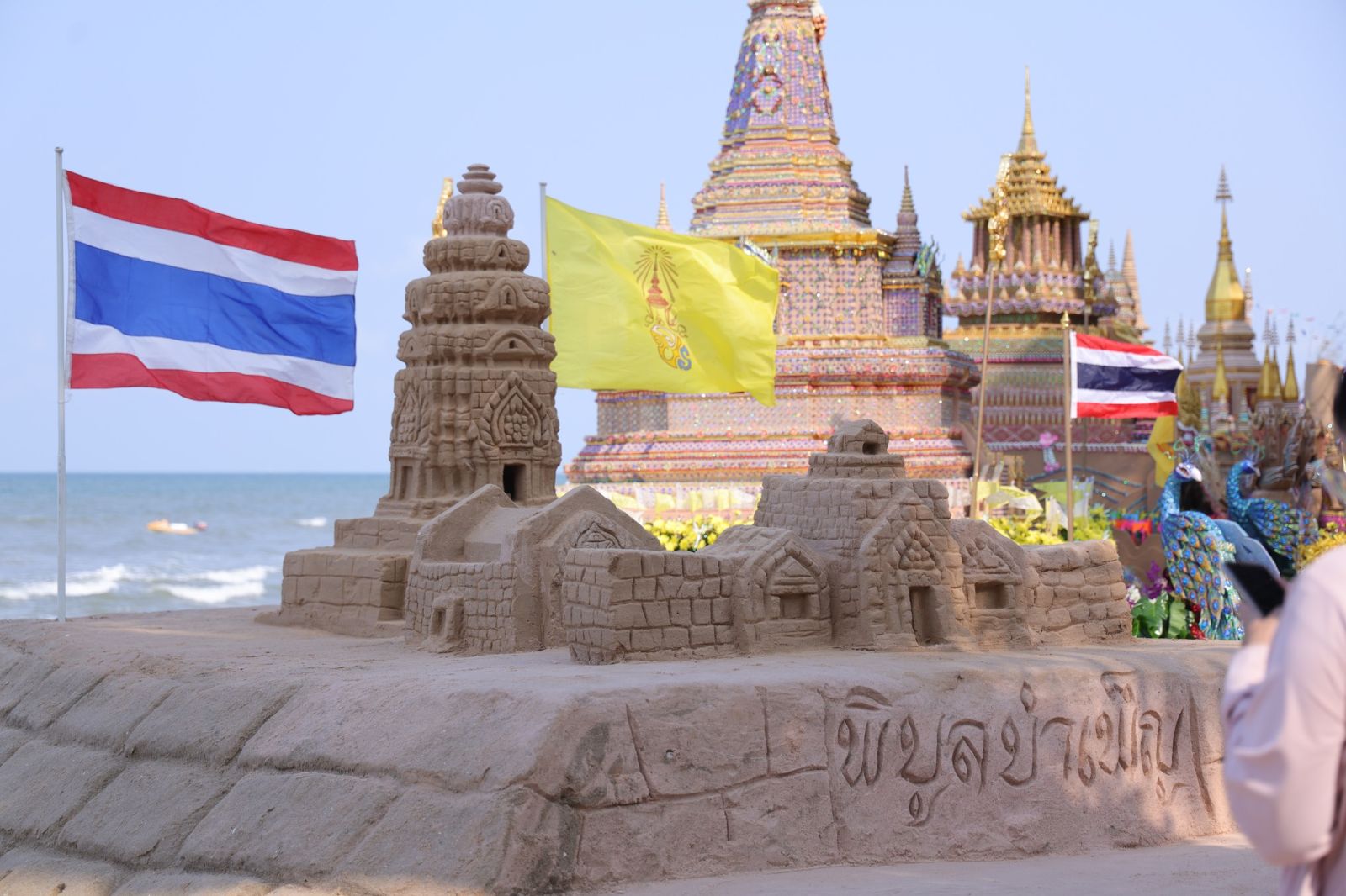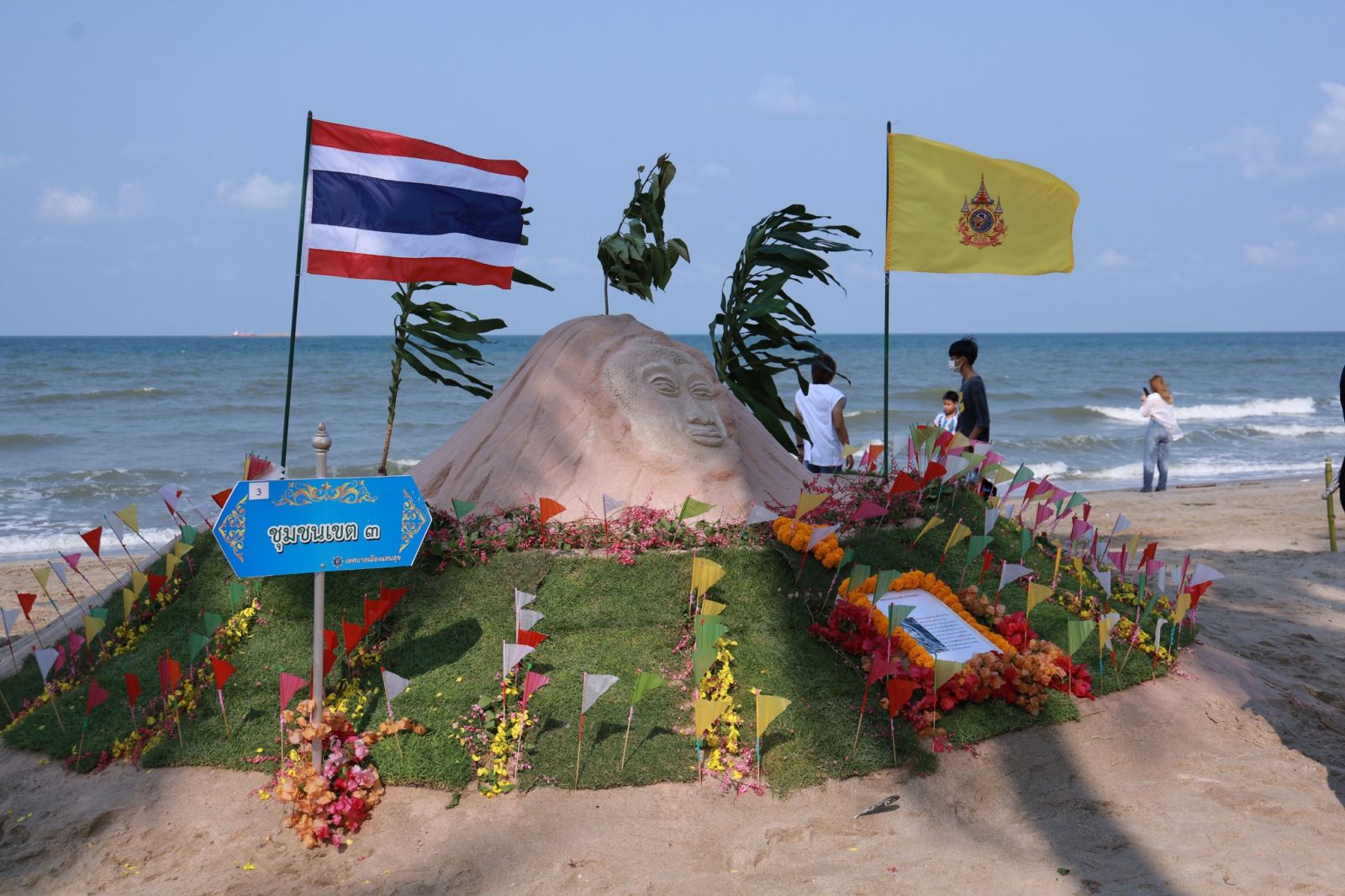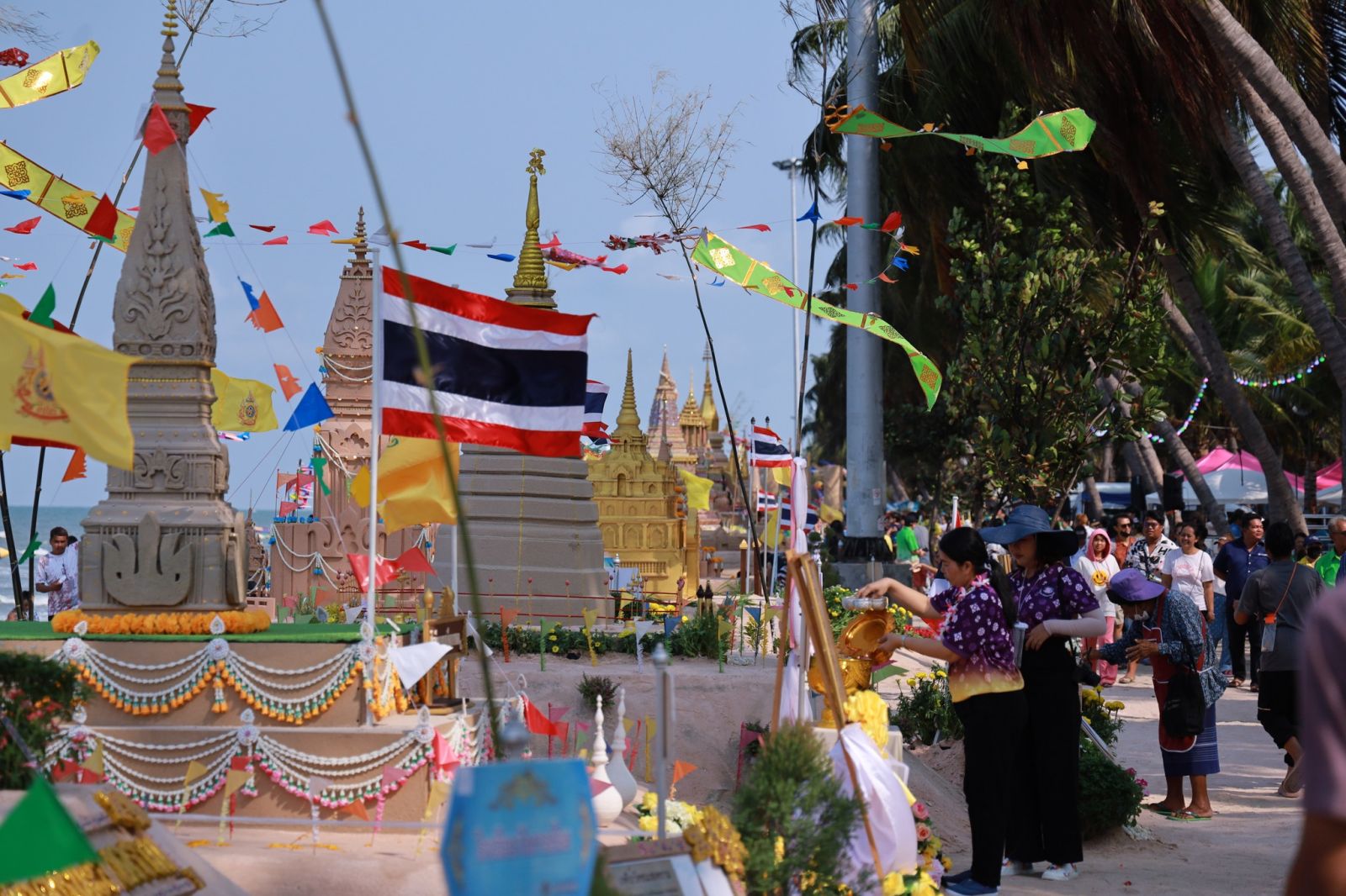 บรรยากาศประเพณีก่อพระทรายวันไหลบางแสนคึกคัก มีหน่วยงาน ชุมชน สถานศึกษาร่วมก่อพระทรายรวม 55 หน่วยงาน