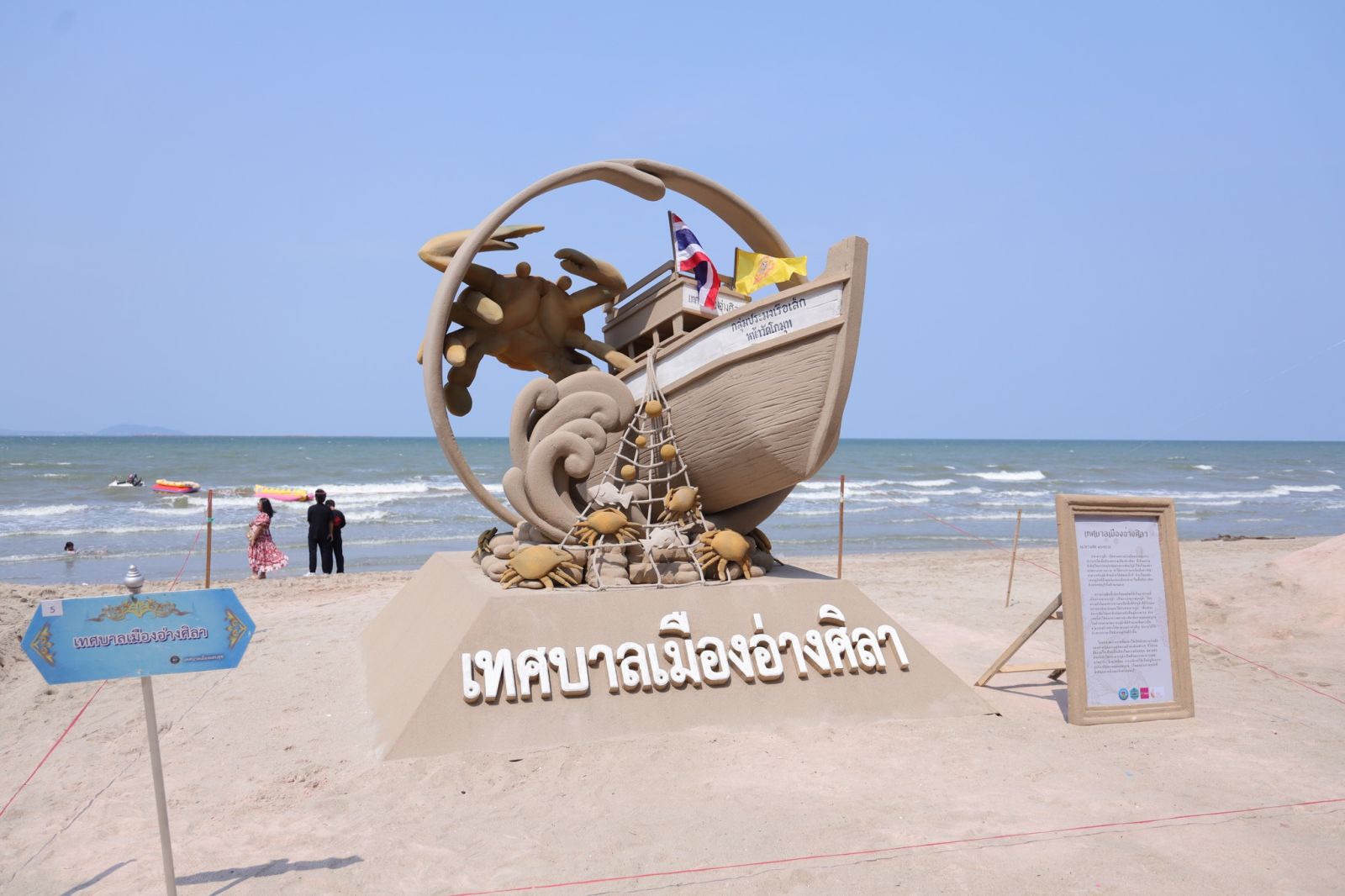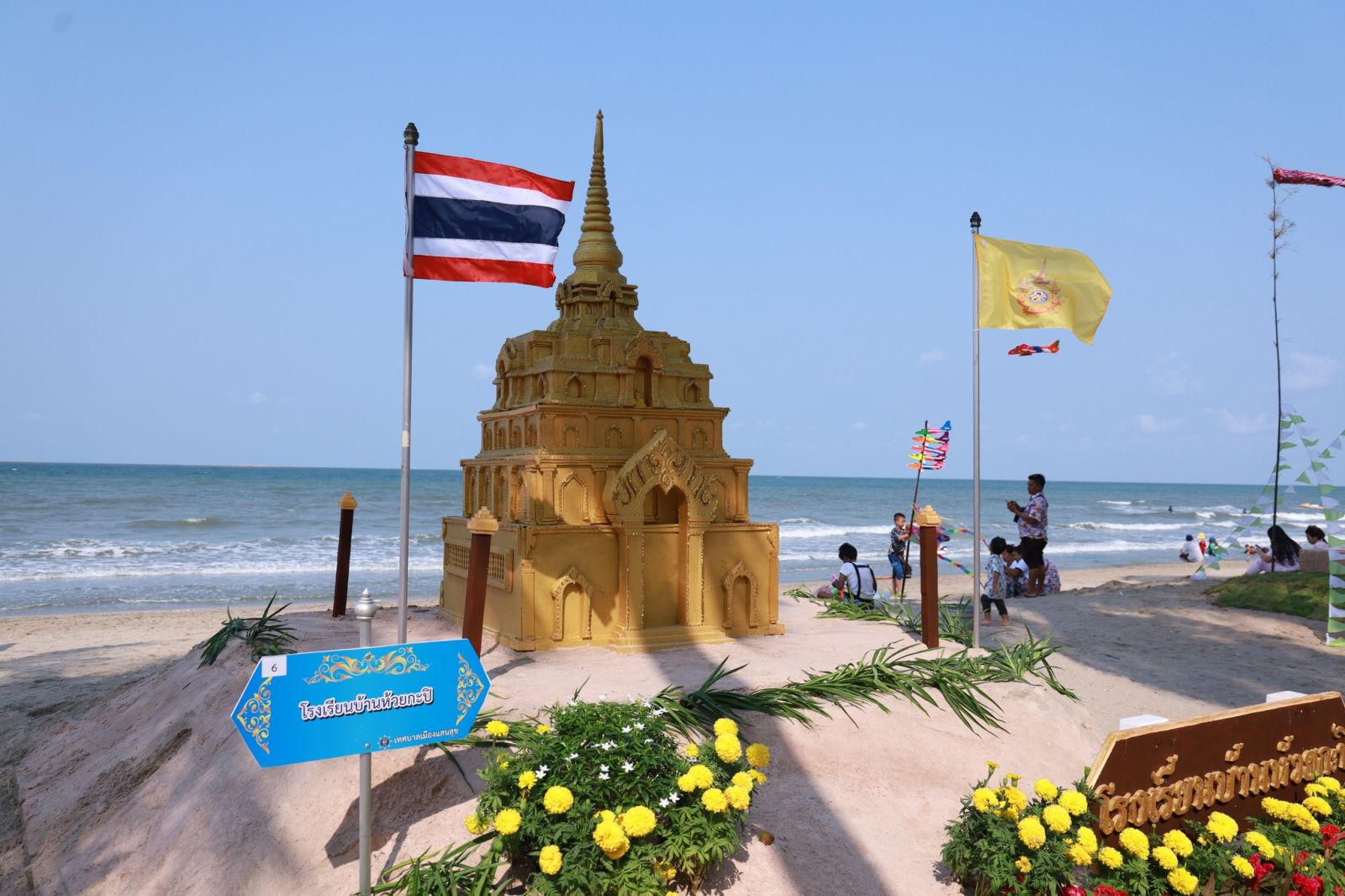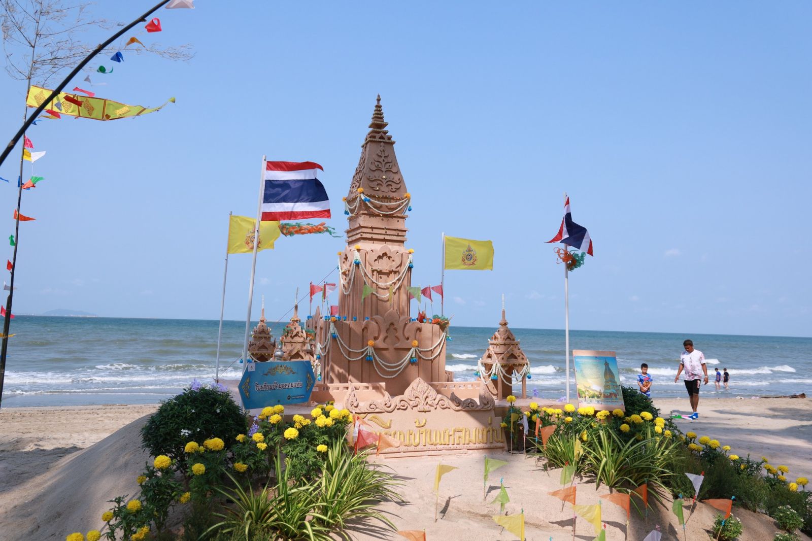 บรรยากาศประเพณีก่อพระทรายวันไหลบางแสนคึกคัก มีหน่วยงาน ชุมชน สถานศึกษาร่วมก่อพระทรายรวม 55 หน่วยงาน