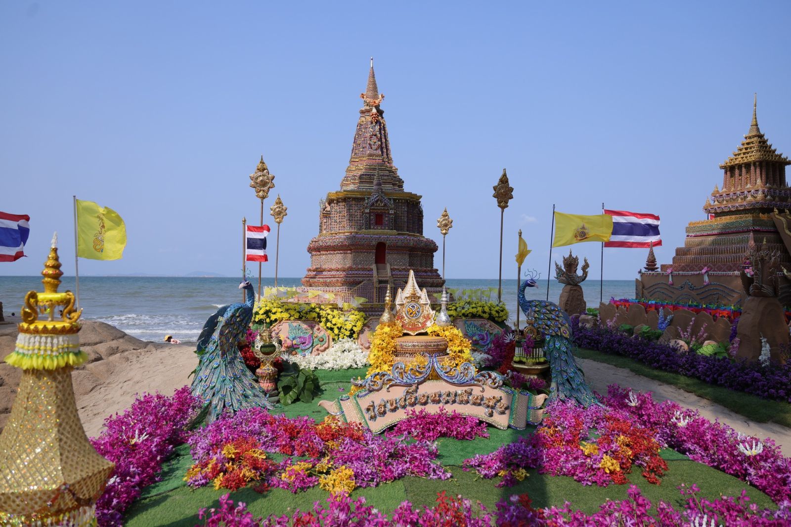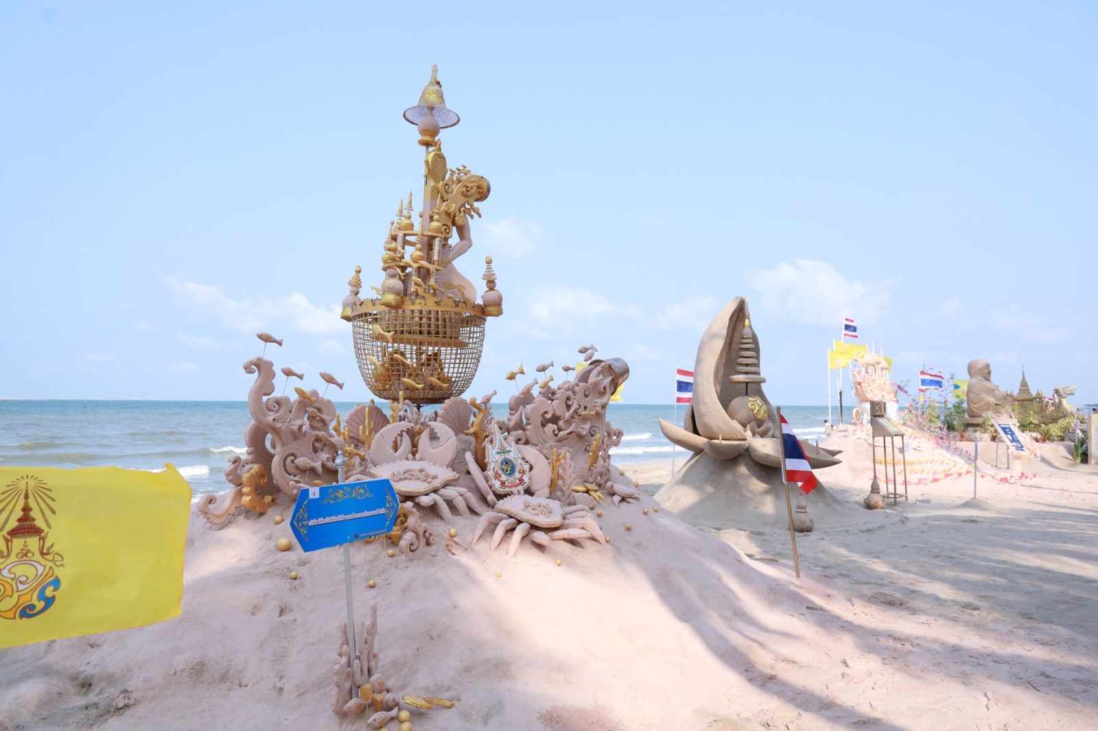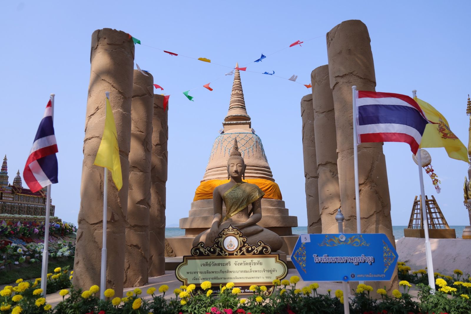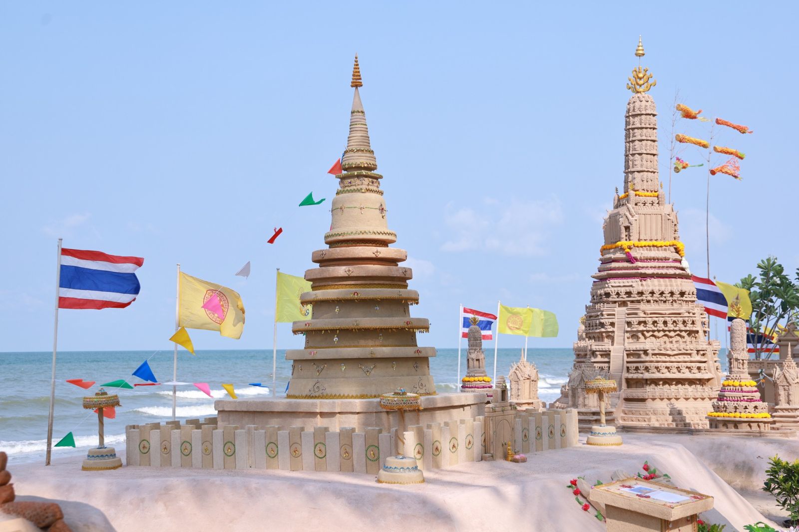 บรรยากาศประเพณีก่อพระทรายวันไหลบางแสนคึกคัก มีหน่วยงาน ชุมชน สถานศึกษาร่วมก่อพระทรายรวม 55 หน่วยงาน