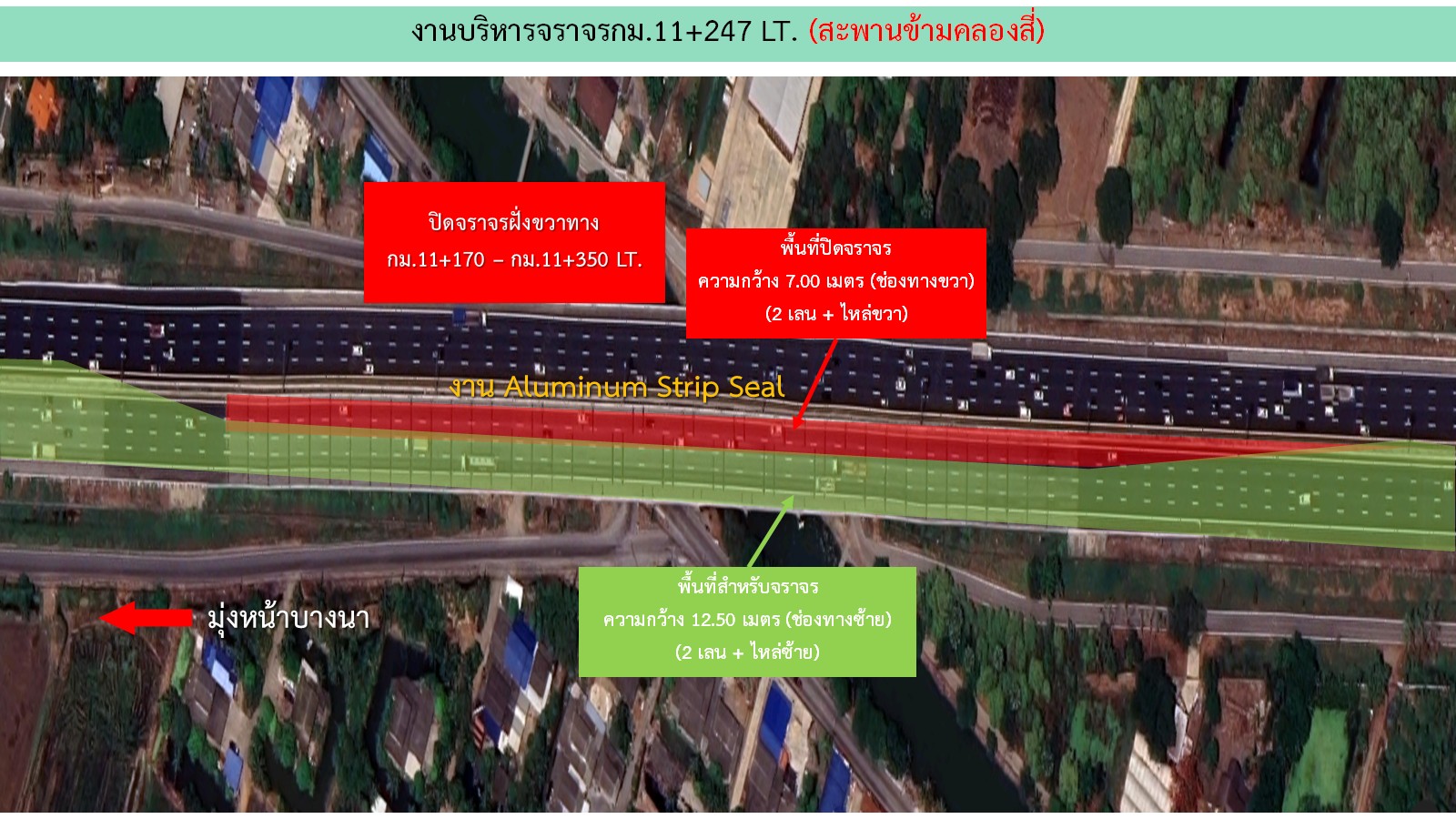 ข่าวประชาสัมพันธ์ แขวงทางหลวงพิเศษระหว่างเมือง จะทำการซ่อมสะพานและโครงสร้าง บนทางหลวงหมายเลข 9 กม.11+247 LT. (สะพานข้ามคลองสี่) ฝั่งมุ่งหน้าบางพลี ปิดช่องจราจร 2 ช่องทางขวา ตั้งแต่ วันที่ 20 เม.ย. 2567–4 พ.ค. 2567 ขออภัยในความไม่สะดวก และเผื่อเวลาเดินทาง