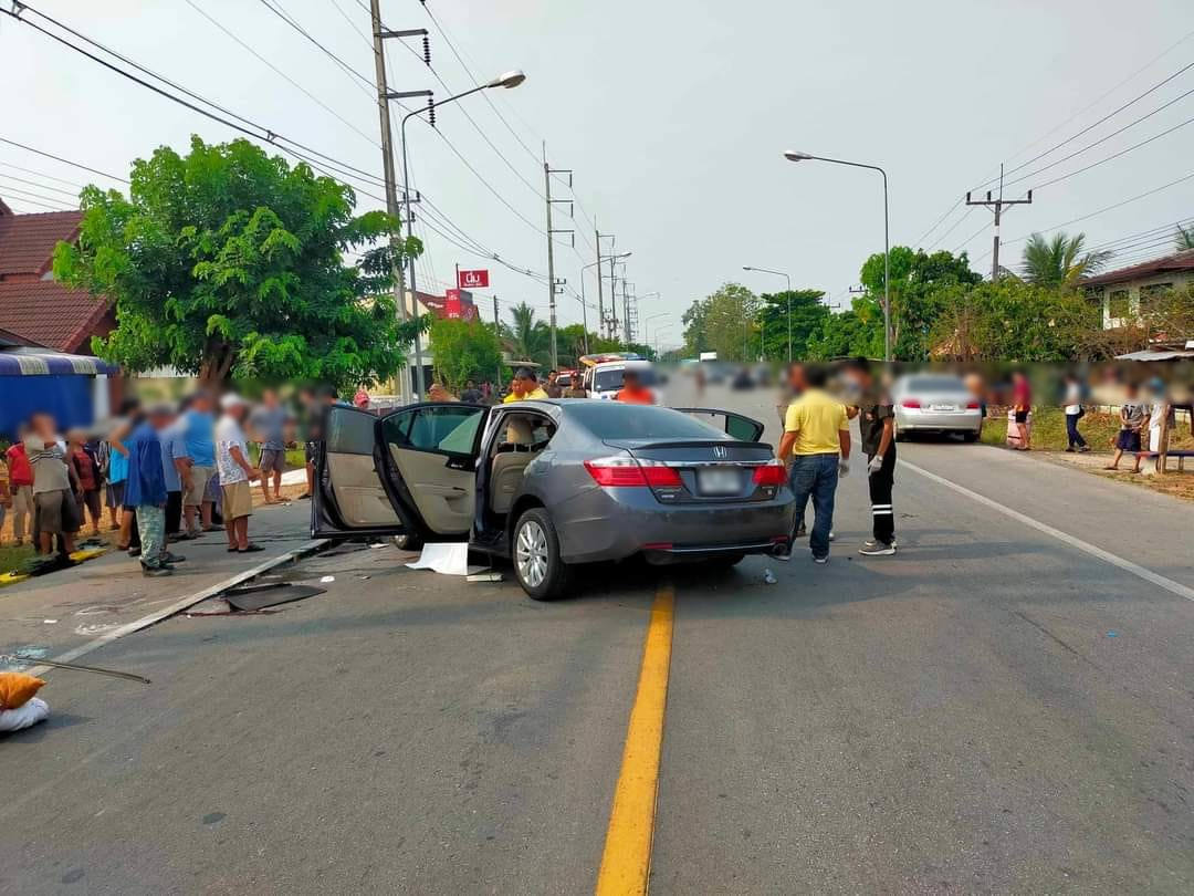 รถนั่งส่วนบุคคลชนเสาไฟ ก่อนเสียหลักชนรถจักรยานยนต์ กลางถนนสายลำปาง - แจ้ห่ม มีผู้เสียชีวิต 2 และเจ็บหลายราย