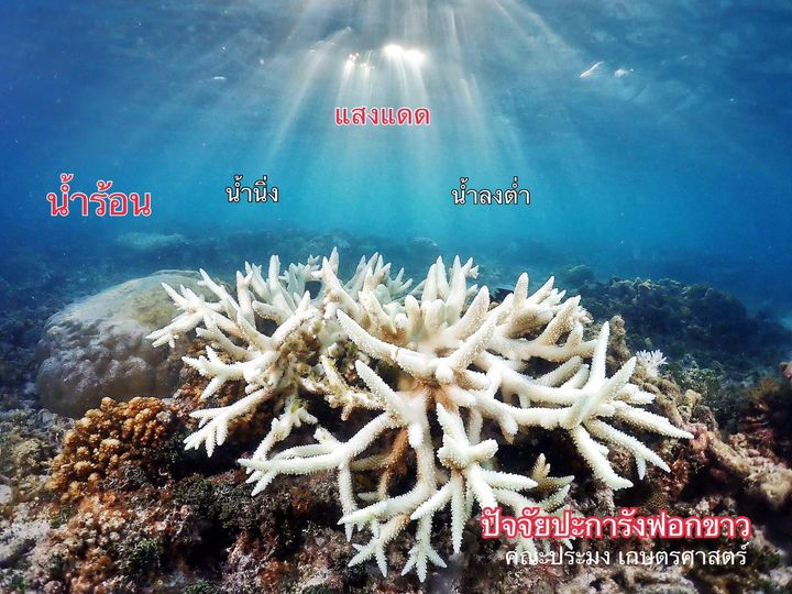 น้ำร้อน - นั่นคือสาเหตุหลัก น้ำร้อนเกิน 30.5-31 องศาต่อเนื่องกัน 3-4 สัปดาห์ ปะการังเริ่มแสดงอาการฟอกขาว