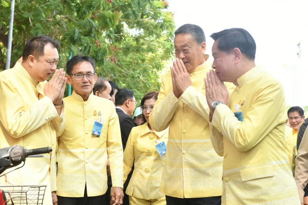 วันนี้ (14 พ.ค. 67) นายเศรษฐา ทวีสิน นายกรัฐมนตรี เยี่ยมชมสินค้าผลิตภัณฑ์ชุมชน และนิทรรศการก่อนเป็นประธานการประชุมคณะรัฐมนตรีอย่างเป็นทางการนอกสถานที่ ครั้งที่ 3/2567 “ฐานเศรษฐกิจสีเขียว และการท่องเที่ยวเชิงนิเวศ” ณ ห้องประชุมพะนอมแก้วกำเนิด ชั้น 2 อาคารสุเมธตันติเวชกุล มหาวิทยาลัยราชภัฏเพชรบุรี ตำบลนาวุ้ง อำเภอเมืองเพชรบุรี จังหวัดเพชรบุรี โดย นายกรัฐมนตรีและคณะรัฐมนตรีทุกท่านได้สวมเสื้อลาย “สุวรรณวัชร์" สีเหลือง เป็นผ้าจากลายวัดใหญ่สุวรรณาราม ผ้าอัตลักษณ์ประจำจังหวัดเพชรบุรี และเป็นลายที่ประยุกต์มาจากลายกรวยเชิงที่ลายเสาในพระอุโบสถวัดใหญ่สุวรรณาราม