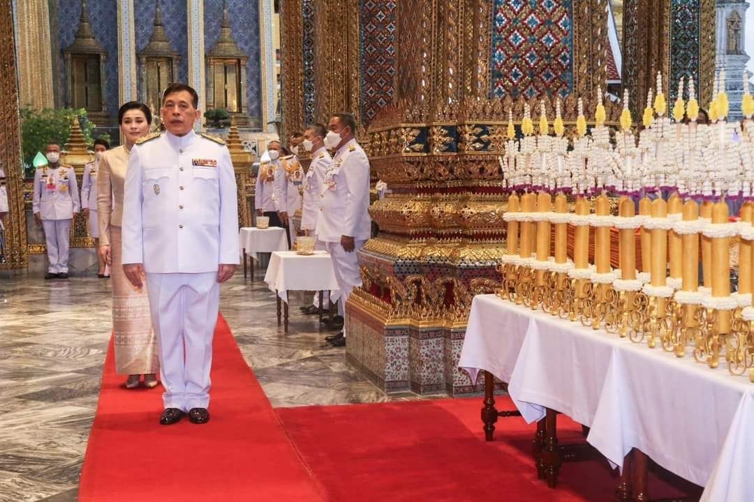 จากนั้น พระบาทสมเด็จพระเจ้าอยู่หัว ทรงพระสุหร่าย ทรงเจิมเทียนทุกเล่มที่ทรงพระราชอุทิศ เสร็จแล้ว เสด็จเข้าพระอุโบสถ ทรงวางกระทงดอกไม้บนพานหน้าฐานชุกชี ทรงจุดธูปเทียนเครื่องนมัสการท้ายที่นั่ง แล้วทรงจุดเทียนห่วงบูชาพระพุทธมหามณีรัตนปฏิมากร จากนั้น ทรงจุดเทียนเครื่องนมัสการท้ายที่นั่งบูชาพระพุทธยอดฟ้าจุฬาโลกย์ และพระพุทธเลิศหล้านภาไลย เสร็จแล้ว ทรงจุดธูปเทียน เครื่องนมัสการทองใหญ่ที่หน้าธรรมาสน์ศิลา ทรงกราบ สมเด็จพระนางเจ้า ฯ พระบรมราชินี ทรงจุดธูปเทียนเครื่องนมัสการทองทิศที่หน้าธรรมาสน์ศิลา ทรงกราบ จากนั้น พระบาทสมเด็จพระเจ้าอยู่หัว ทรงประเคนพัดยศเปรียญ แด่พระภิกษุ และสามเณรที่สอบได้เปรียญธรรม 9 ประโยค และ 6 ประโยค ประจำปี 2567 จำนวน 386 รูป พระสงฆ์เจริญชัยมงคลคาถา จบแล้ว ทรงประเคนผ้าไตรแด่พระสงฆ์ที่เจริญชัยมงคลคาถา ต่อจากนั้น พระราชทานพระบรมราชวโรกาสให้ ผู้ชนะการประกวดแต่งหนังสือสอนพระพุทธศาสนาแก่เด็ก ประจำปี 2567 ในหัวข้อ “การปรับตัว” จำนวน 3 รางวัล รางวัลที่ 1 นายธีรวีร์ แพบัว รางวัลที่ 2 นายสถานันท์ เนาวรัตน์ และรางวัลที่ 3 ร้อยเอก เทพอรุณ ภาคสุทธิผล เฝ้าทูลละอองธุลีพระบาท รับพระราชทานรางวัล เสร็จแล้วทรงหลั่งทักษิโณทก พระสงฆ์ถวายอนุโมทนา ถวายอดิเรก จากนั้น พระบาทสมเด็จพระเจ้าอยู่หัว และสมเด็จพระนางเจ้า ฯ พระบรมราชินี เสด็จพระราชดำเนินไปทรงกราบที่หน้าเครื่องนมัสการ ทรงรับการถวายความเคารพของผู้มาเฝ้าทูลละอองธุลีพระบาท แล้วเสด็จออกจากพระอุโบสถ ไปประทับรถยนต์พระที่นั่ง เสด็จพระราชดำเนินกลับ
