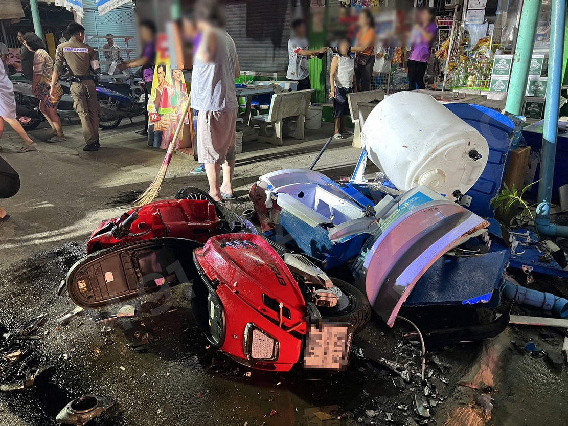 เมื่อเวลา 23.00 น.วันที่ 23 พ.ค.67 เจ้าหน้าที่ตำรวจ สภ.ชัยพฤกษ์ ได้รับแจ้งมีรถกระบะพุ่งชนรถยนต์และรถ จยย.ที่จอดอยู่ริมทางได้รับความเสียหายและมีผู้บาดเจ็บ เหตุเกิดในซอย อบต.คลองข่อย ต.คลองข่อย อ.ปากเกร็ด จ.นนทบุรี จากนั้นจึงรุดเข้าตรวจสอบ