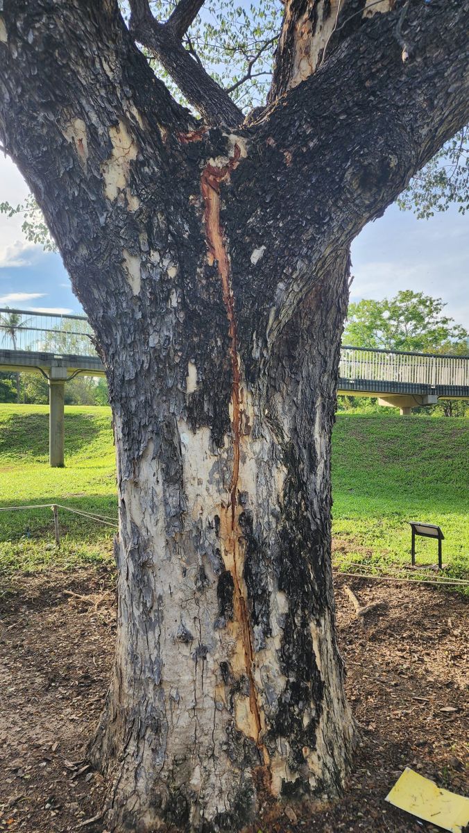 "แจ้งข่าว คุณลุงจามจุรีถูกฟ้าผ่า เตือนผู้ใช้บริการ หลีกเลี่ยงการอยู่ใต้ต้นไม้ใหญ่ในขณะ ฝนตกในช่วงฝนตกหนัก หลายวันที่ผ่านมา ได้มีสายฟ้าฟาดลงบนต้นจามจุรีใหญ่ ทำให้เกิดแผลเสียหายต่อลำต้นหลายจุดซึ่งอาจส่งผลให้ต้นจามจุรีนี้ตายลงได้ ขณะนี้ทางสวนได้ติดตาม และ สังเกตอาการอย่างใกล้ชิด และได้ประสานผู้เชี่ยวชาญด้านรุกขกร เพื่อหาแนวทางในการช่วยชีวิตคุณลุงจามจุรี
