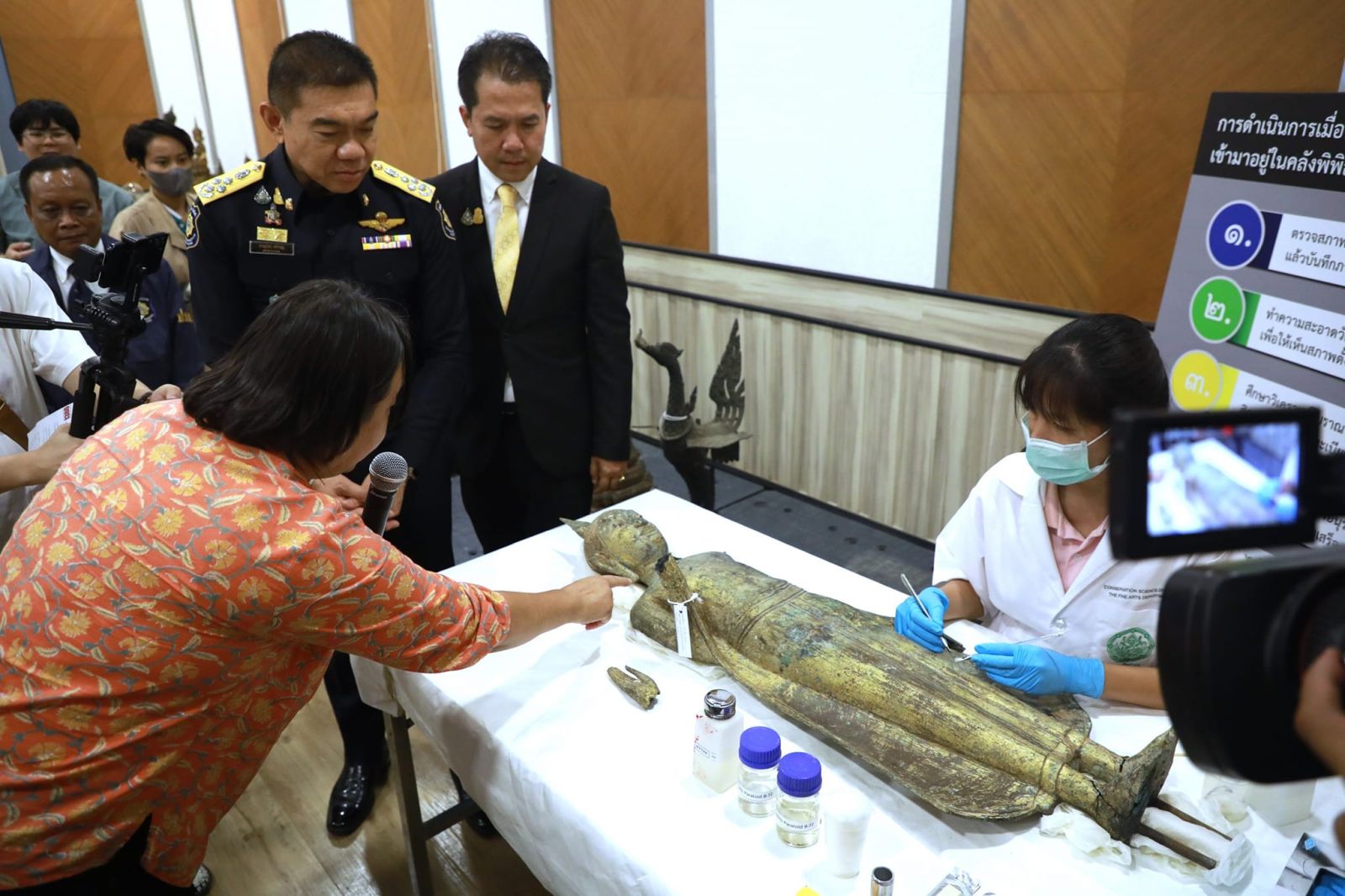 พล.ต.ท.ภาณุรัตน์ กล่าวว่า ด้วยทรัพย์สินในคดีดังกล่าวมีลักษณะเป็นพระพุทธรูปโบราณ จึงได้ประสานกรมศิลปากรที่มีความเชี่ยวชาญเข้าตรวจสอบและพบว่า เป็นพระพุทธรูปและวัตถุโบราณ จำนวน 33 รายการ ตามนิยามที่กำหนดในพระราชบัญญัติโบราณสถาน โบราณวัตถุ ศิลปวัตถุ และพิพิธภัณฑสถานแห่งชาติ พ.ศ. 2504 ซึ่งตามมาตรา 25 กำหนดให้โบราณวัตถุ ศิลปวัตถุ ที่เป็นทรัพย์สินของแผ่นดิน ต้องนำมาเก็บรักษาไว้ในพิพิธภัณฑ์สถานแห่งชาติ จึงได้ประสานกรมศิลปากรส่งมอบเพื่อประโยชน์และให้เป็นสมบัติของชาติต่อไป