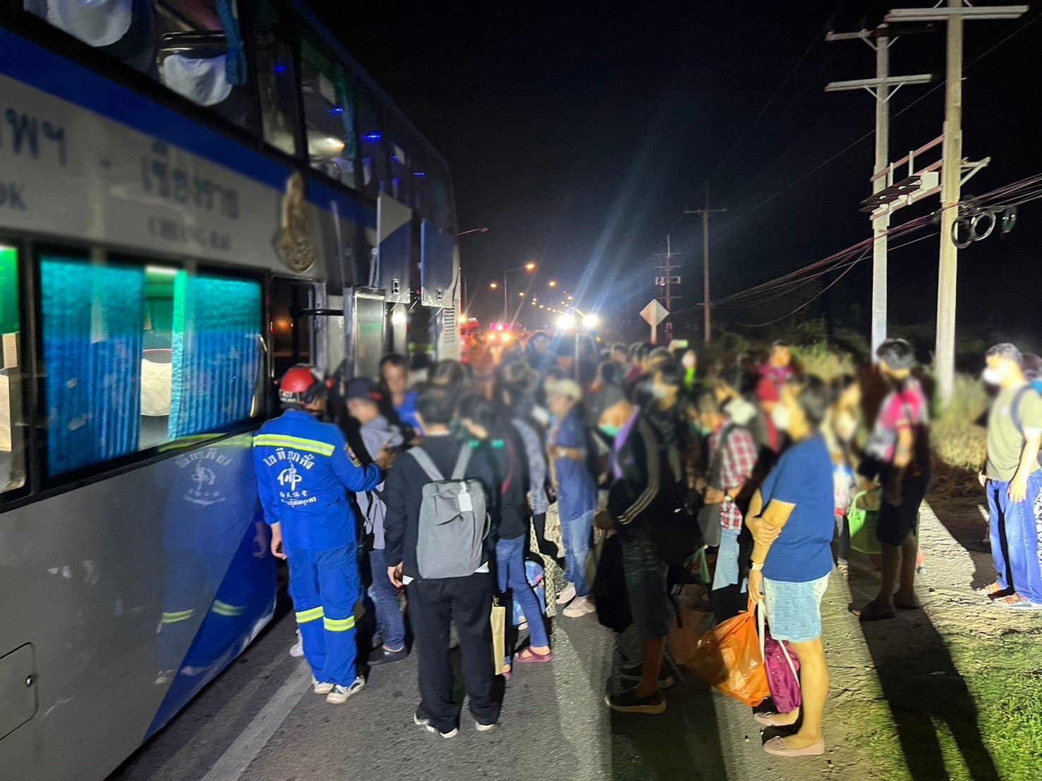 เบื้องต้นจากการสอบถาม ซึ่งเป็นผู้ขับขี่รถทัวร์คันดังกล่าวเล่าว่า ได้ขับรถออกจากสถานีที่อำเภอเชียงแสน จังหวัดเชียงราย มุ่งหน้า จังหวัดกรุงเทพมหานคร โดยมีผู้โดยสารรวมผู้ขับขี่ทั้งหมด 42 คน ระหว่างเดินทางมายังจุดเกิดเหตุพบมีลักษณะคล้ายรถจักรยานยนต์พุ่งออกมาอย่างกระทันหัน ด้วยความตกใจจึงทำให้รถเสียการทรงตัว และเสียหลักตกลงร่องกลางถนนชนกับเสาไฟส่องแสงสว่าง