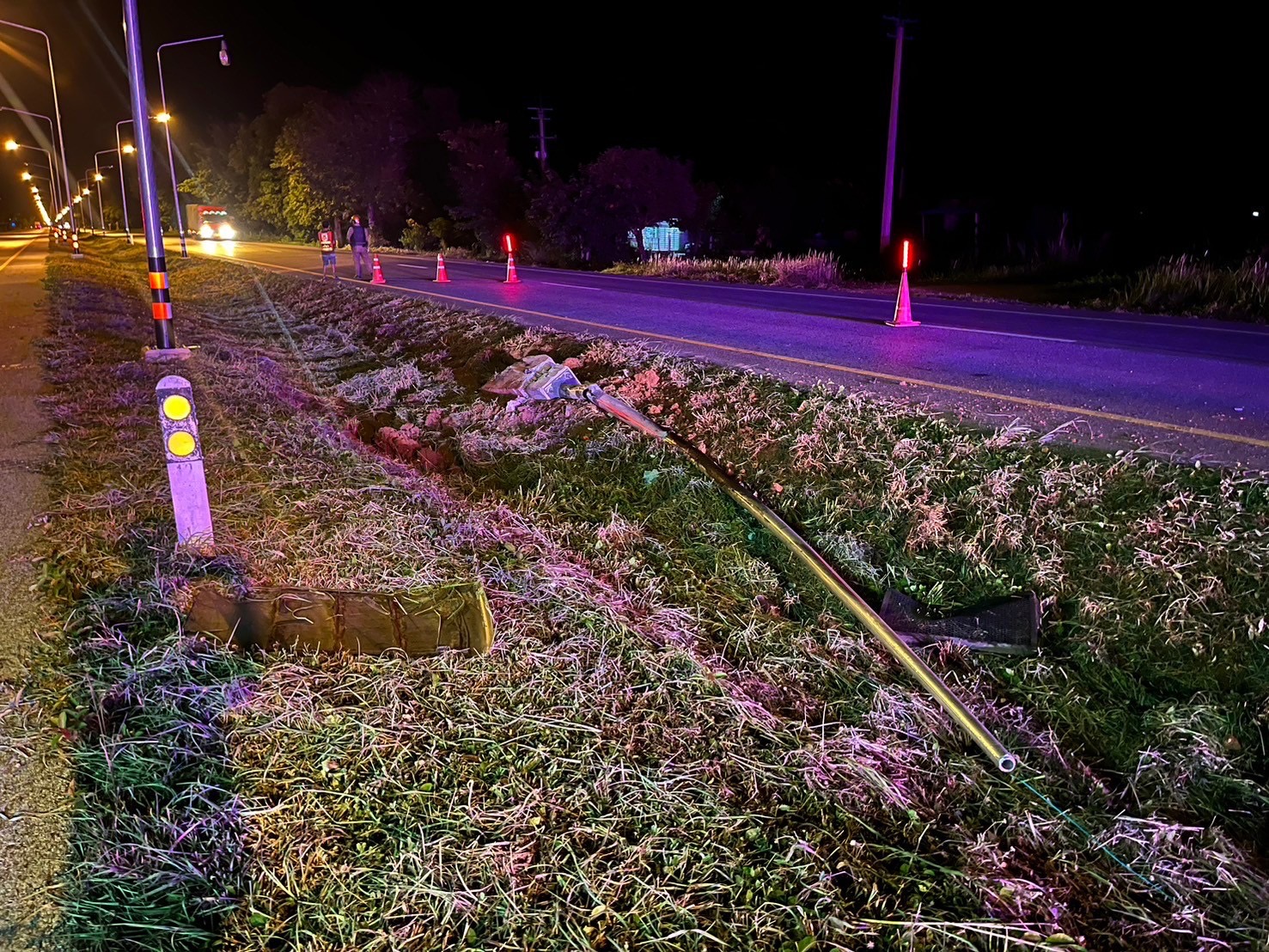 รถทัวร์เสียหลักตกร่องกลางแล้วชนเสาไฟ ถนนสายวังทองสากเหล็ก มีผู้บาดเจ็บหลายราย จ.พิษณุโลก