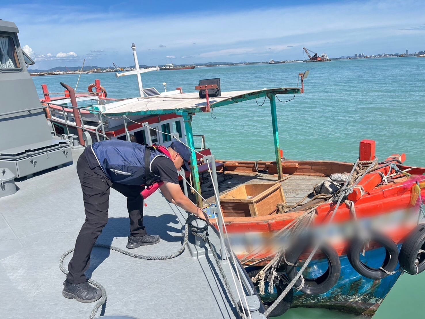 กองบัญชาการตำรวจสอบสวนกลาง (CIB) โดยกองบังคับการตำรวจน้ำ (บก.รน.) เจ้าหน้าที่ชุดจับกุม สถานีตำรวจน้ำ 2 กองกำกับการ 5 กองบังคับการตำรวจน้ำ (ตำรวจน้ำเกาะสีชัง) ร่วมกันจับกุม นายเอ (นามสมมุติ) อายุ 50 ปี ฐาน “ใช้เรือผิดจากเงื่อนไขหรือข้อกำหนดในใบอนุญาตใช้เรือ ตาม ม.175 พ.ร.บ.การเดินเรือในน่านน้ำไทย แก้ไขเพิ่มเติมโดย พ.ร.บ.การเดินเรือในน่านน้ำไทย (ฉบับที่14) พ.ศ.2535” จับกุมได้บนเรือ ประเภทบรรทุกผู้โดยสาร บริเวณท่าเรือแหลมฉบัง อ.ศรีราชา จ.ชลบุรี