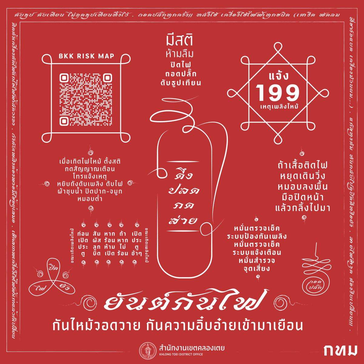 “หัวใจคือการป้องกันไม่ให้เกิดเหตุ เช่น ไม่เผลอเปิดเครื่องใช้ไฟฟ้าทิ้งไว้ ไม่จุดธูปทิ้งไว้ โดยชุมชนต้องช่วยกันดูแลและระมัดระวังในเรื่องเหล่านี้ด้วย”