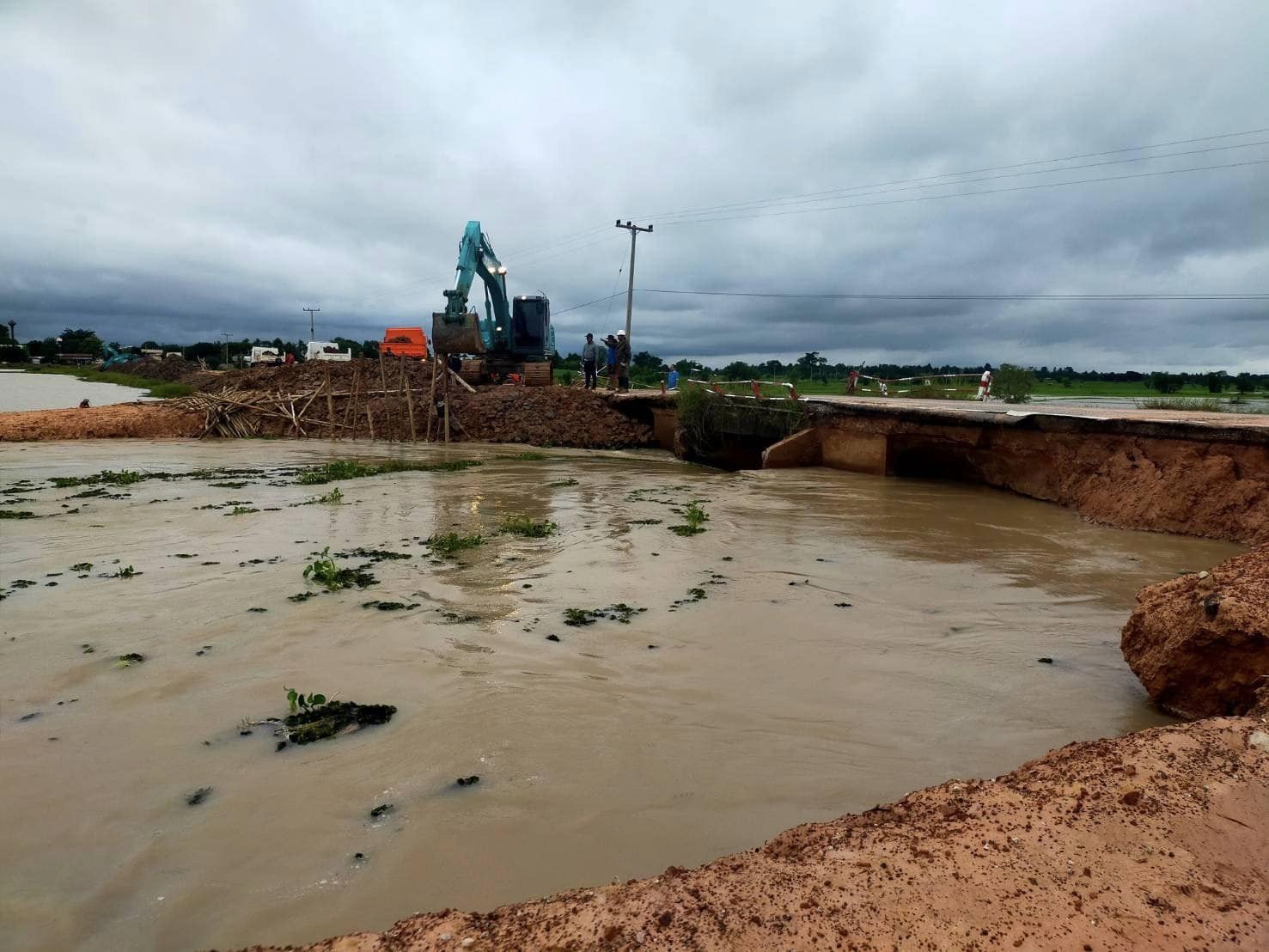 ปัจจุบันได้เร่งนำหินขนาดใหญ่มาวางกั้นจุดที่น้ำไหลทะลักเพื่อชะลอน้ำ และวางแนวทางในการซ่อมแซมจุดที่เสียหาย นอกจากนี้ ยังได้ประสานงานร่วมกับหน่วยงานที่เกี่ยวข้อง เพื่อแจ้งเตือนประชาชนในพื้นที่ ต.โนนราษี ต.กำพี้ ต.ดอนงัว อ.บรบือ จ.มหาสารคาม ขนย้ายสิ่งของขึ้นที่สูงและให้อพยพสัตว์เลี้ยงออกจากพื้นที่น้ำท่วมไปยังพื้นที่ปลอดภัย พร้อมสำรวจความเสียหายและช่วยเหลือประชาชนต่อไป
