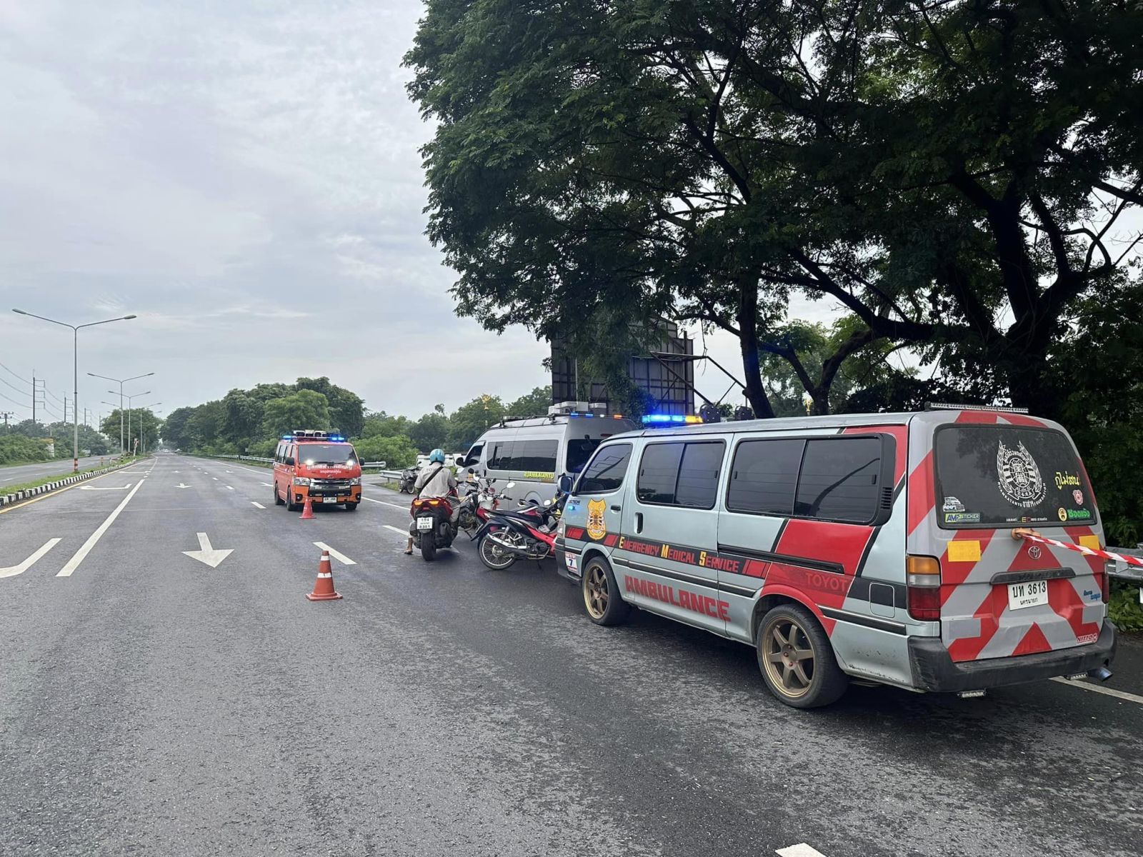 ถนนรังสิต-นครนายก ขาออก หน้าโรงแรมจันทรา ในพื้นที่ จ.นครนายก อุบัติเหตุ รถจักรยานยนต์ ไม่ทราบคู่กรณี ส่งผลให้มีผู้เสียชีวิตหญิง 1 ราย กีดขวางช่องทางซ้าย รถชะลอตัวเล็กน้อย #รายงานจราจร #รถติด #อุบัติเหตุ #FM91