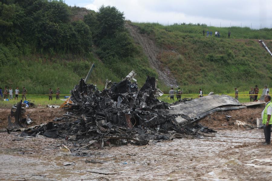 กาฐมาณฑุ, 24 ก.ค. (ซินหัว) — ประมวลภาพจุดเกิดเหตุ เศษซากความเสียหาย และการปฏิบัติงานของทีมกู้ภัย หลังจากเกิดเหตุเครื่องบินพุ่งตกที่ท่าอากาศนานาชาติตริภูวันในกรุงกาฐมาณฑุในวันพุธ (24 ก.ค.) โดยสำนักงานการบินพลเรือนแห่งเนปาลรายงานว่าทีมกู้ภัยสามารถการกอบกู้ร่างผู้เคราะห์ร้ายที่เสียชีวิตจากเหตุการณ์นี้ 18 ราย