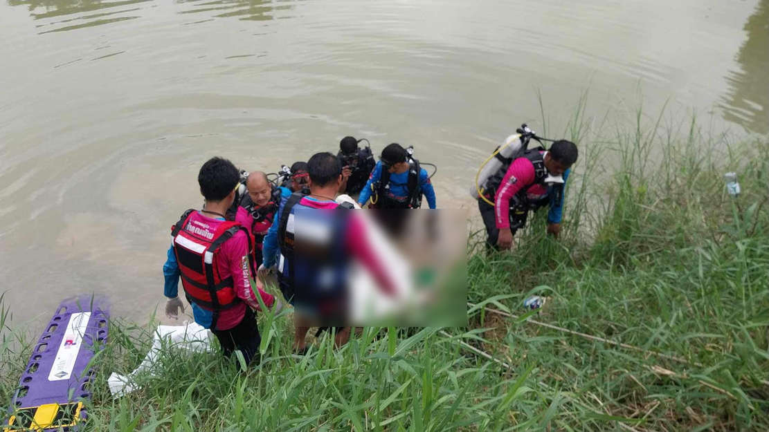 กู้ภัยชุดประดาน้ำงมพบร่างชาย สภาพที่เริ่มเน่าเปื่อยถูกมัดติดกับรถเข็นผัก จมในสระน้ำ ตร.คุมตัวผู้ต้องสงสัยไปสอบปากคำ จ.นครสวรรค์