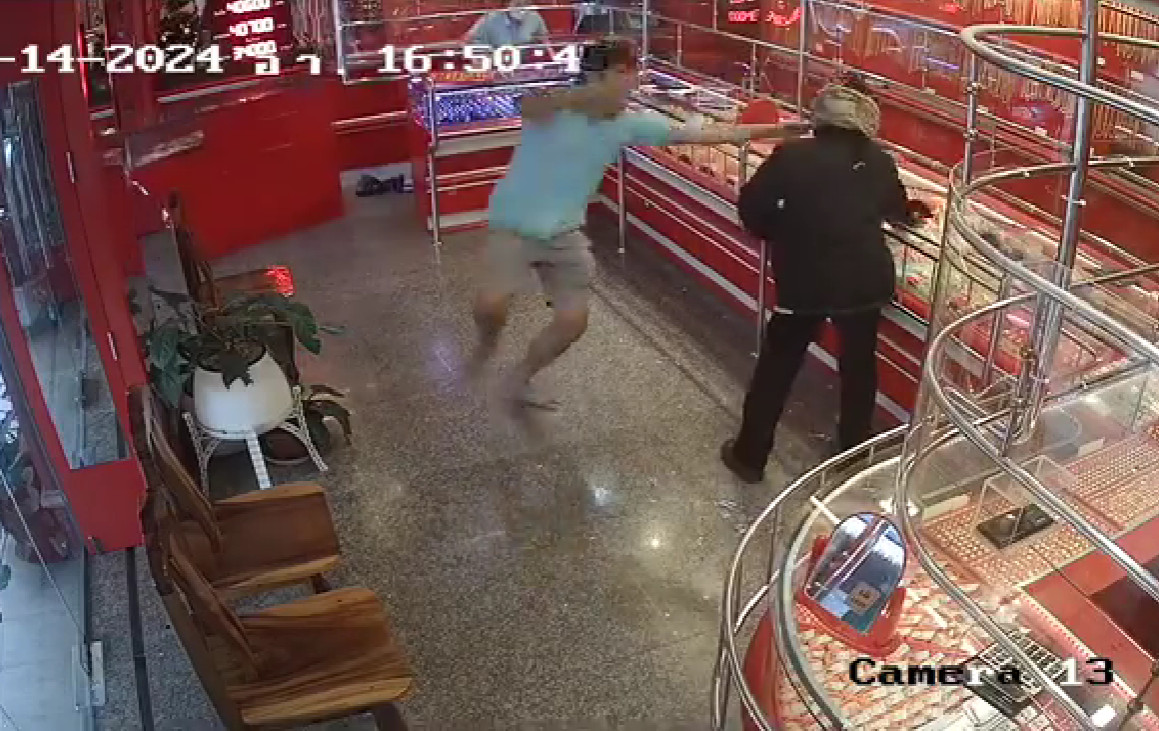 ที่เกิดเหตุ พบคนร้ายเป็นชายไทย อายุ 32 ปี ถูกเจ้าของร้านทองควบคุมตัวเพื่อรอเจ้าหน้าที่ไว้แล้ว โดยเบื้องต้นกล้องวงจรปิดจับภาพได้ ขณะคนร้าย ที่สวมเสื้อคลุมสีดำ สวมหมวกนิรภัย มีอาวุธปืน เข้ามาก่อเหตุ ก่อนจะใช้ขวานทุบกระจกตู้ทองได้รับความเสียหาย แต่เจ้าของร้านสังเกตเห็นว่าน่าจะเป็นอาวุธปืนปลอม จึงได้วิ่งออกมาก่อนกระโดดเข้าใส่และคุมตัวคนร้ายเอาไว้ได้ ก่อนแจ้งเจ้าหน้าที่ตำรวจเข้ามาดำเนินการ ทางเจ้าหน้าที่ตำรวจ ได้คุมตัวผู้ก่อเหตุไปสอบสวนเพื่อหาสาเหตุ และจะดำเนินคดีตามกฎหมายต่อไป