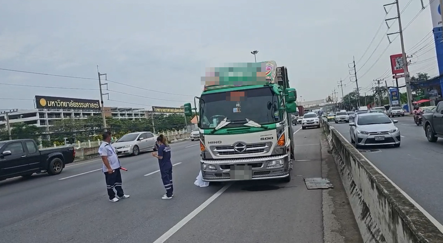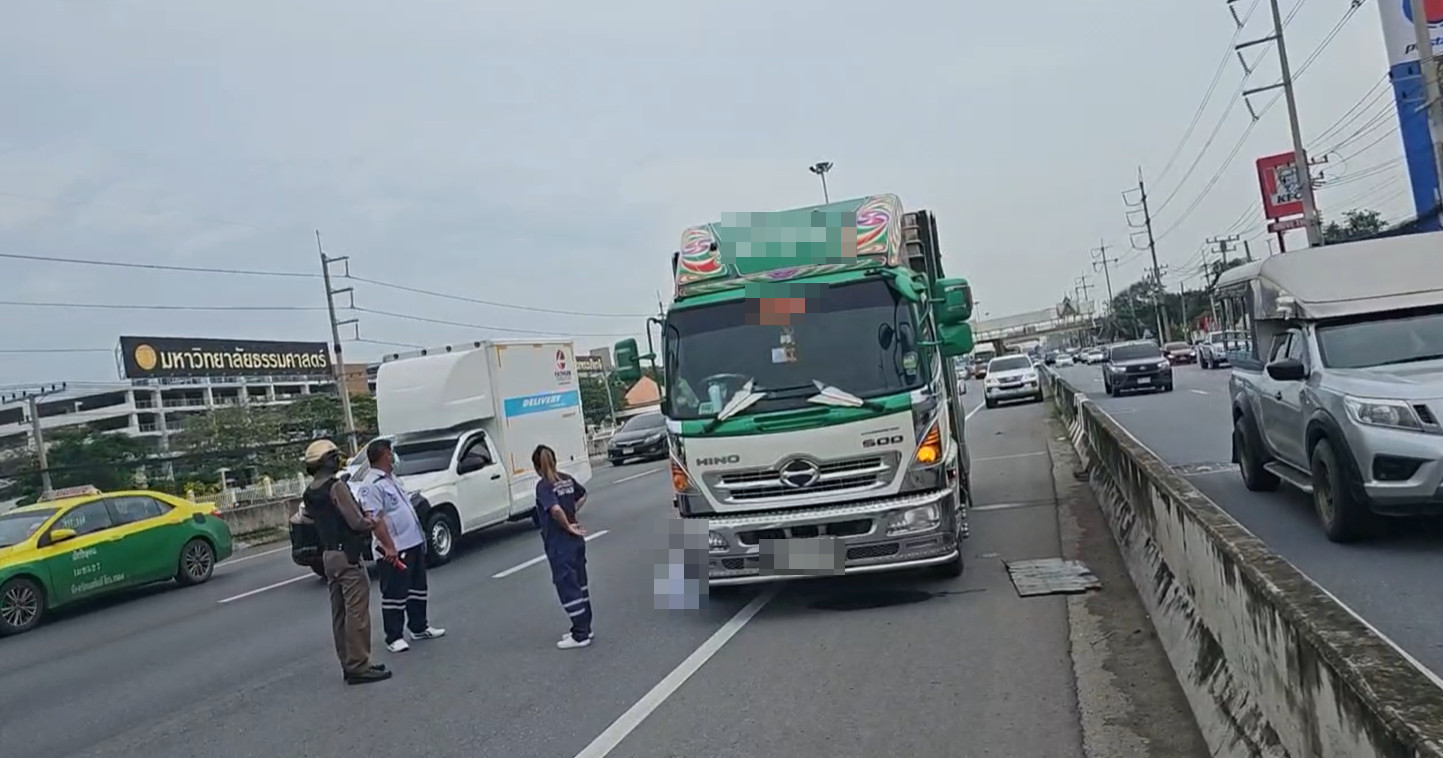 ถนนพหลโยธิน ขาเข้า เยื้องโรงพยาบาลธรรมศาสตร์เฉลิมพระเกียรติ มีเหตุ ผู้ขับขี่รถบรรทุกสิบล้อ เสียชีวิต ไม่ทราบสาเหตุ บริเวณด้านข้างรถ อยู่ในช่องทางหลัก เลนซ้าย เจ้าหน้าที่กำลังดำเนินการ รถติดมาก #รายงานจราจร #รถติด #อุบัติเหตุ #FM91