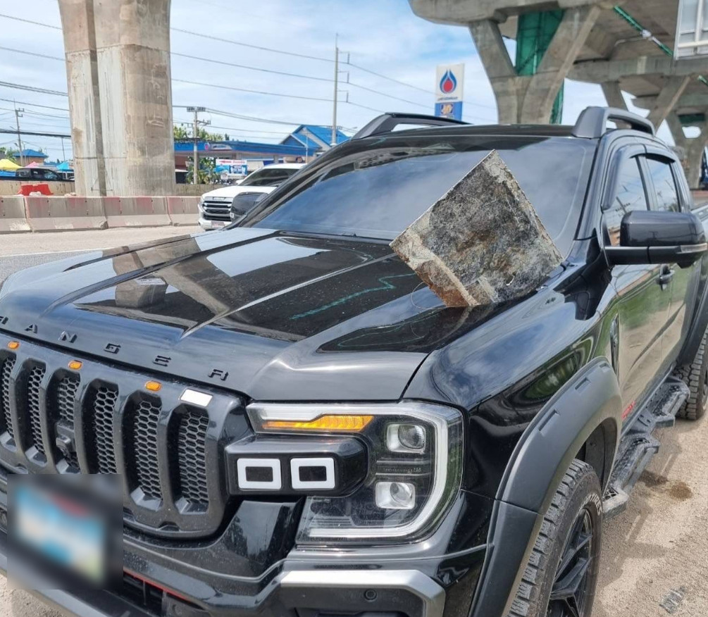 ทางหลวงแจง เหตุแผ่นเหล็กหล่นใส่รถ บนถนนพระราม 2 เพราะลมพัดแรง สั่งหยุดงาน 3 วัน เร่งเยียวยาผู้เสียหาย