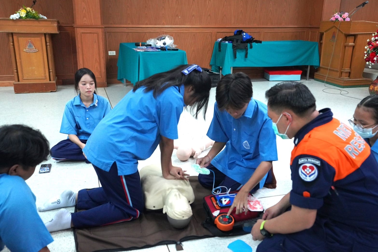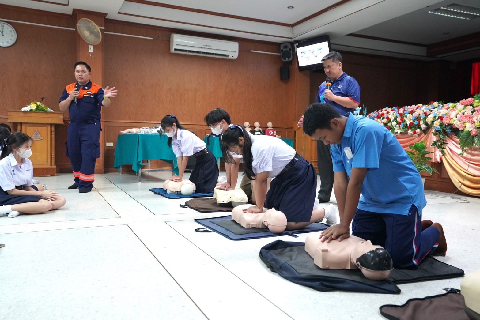 รฟม. จัดกิจกรรมอบรมให้ความรู้การช่วยฟื้นคืนชีพเบื้องต้น (CPR) และการใช้เครื่องกระตุกหัวใจไฟฟ้าชนิดอัตโนมัติ (AED) เฉลิมพระเกียรติพระบาทสมเด็จพระเจ้าอยู่หัว เนื่องในโอกาสพระราชพิธีมหามงคลเฉลิมพระชนมพรรษา 6 รอบ 28 กรกฎาคม 2567 ให้แก่นักเรียนโรงเรียนสุวรรณารามวิทยาคม